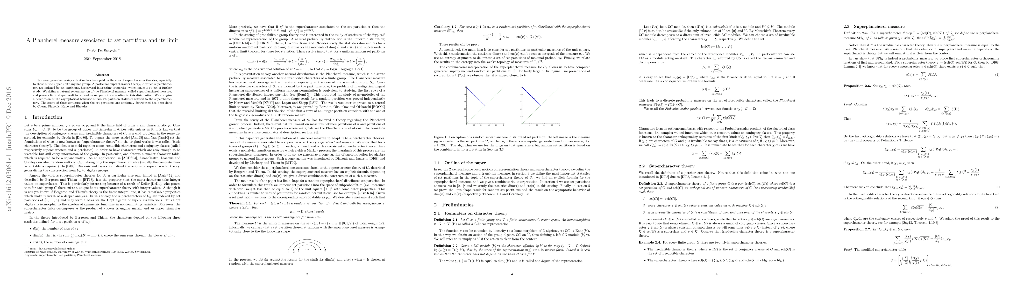 This paper introduces a superplancherel measure for a supercharacter theory indexed by set partitions, proving a limit shape result for random set partitions. It also examines the asymptotic behavior of two related set partition statistics, extending previous work by Chern, Diaconis, Kane, and Rhoades.