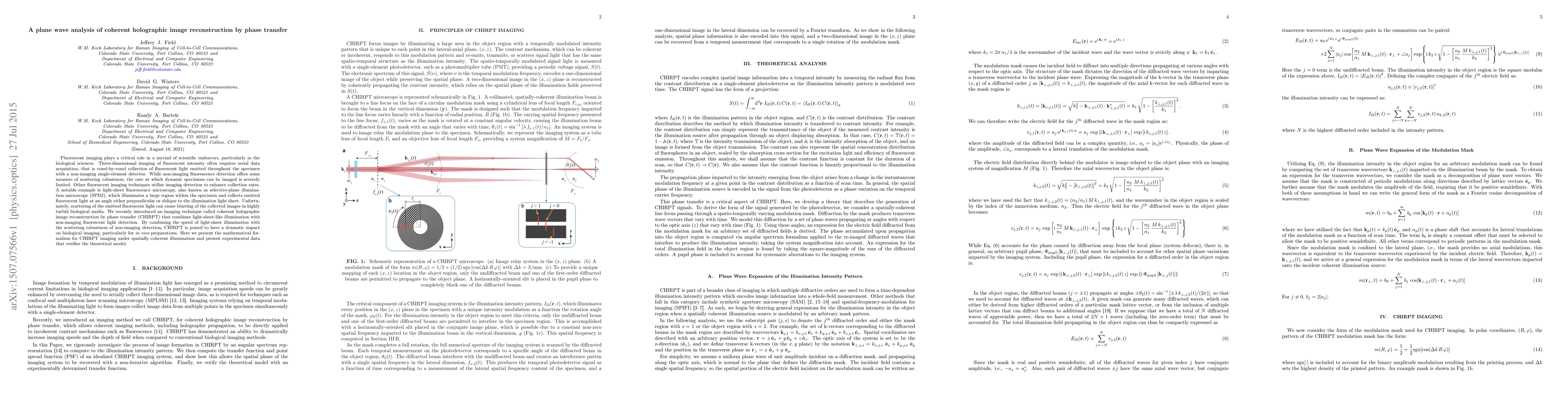 This paper introduces a novel imaging technique called coherent holographic image reconstruction by phase transfer (CHIRPT) that combines the speed of light-sheet microscopy with the scattering robustness of non-imaging detection to enhance the imaging of dynamic biological specimens. The study presents a mathematical model for CHIRPT and validates it with experimental data.