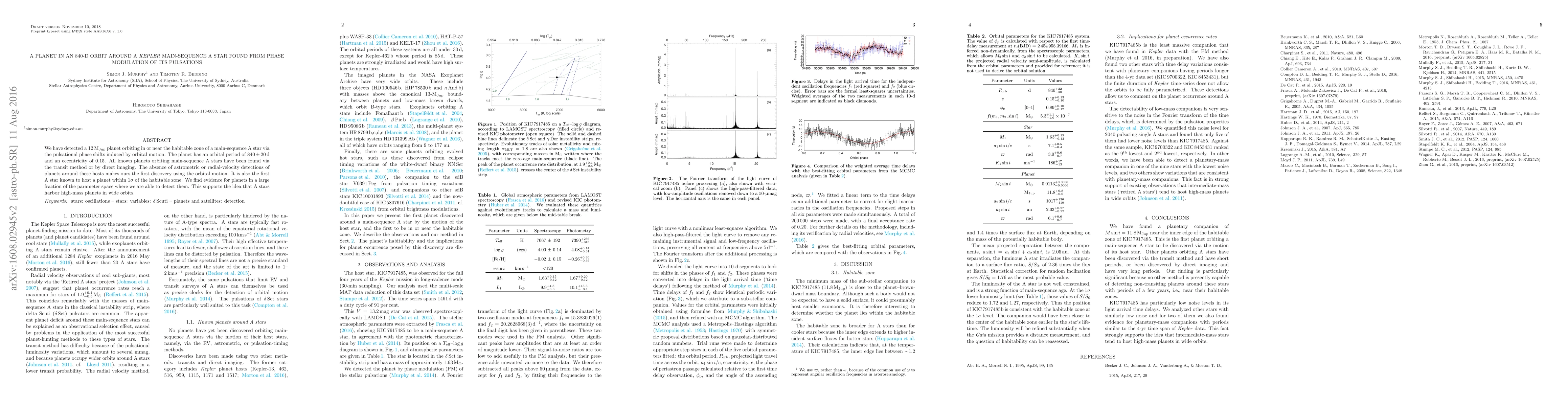 This paper reports the first detection of a 12 M$_{\rm Jup}$ planet in an 840-day orbit around a main-sequence A star, using the novel method of phase modulation of the star's pulsations. This planet resides near the star's habitable zone, marking the first such discovery using orbital motion rather than transit or direct imaging methods.