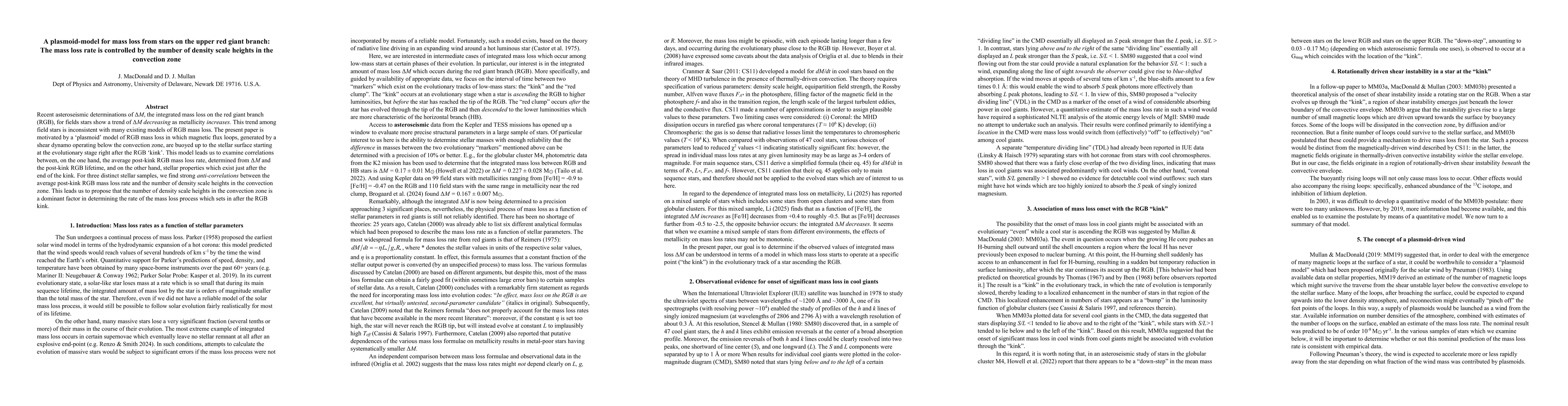 Recent asteroseismic determinations of {\Delta}M, the integrated mass loss on the red giant branch (RGB), for fields stars show a trend of {\Delta}M decreasing as metallicity increases. This trend among field stars is inconsistent with many existing models of RGB mass loss. The present paper is motivated by a 'plasmoid' model of RGB mass loss in which magnetic flux loops, generated by a shear dynamo operating below the convection zone, are buoyed up to the stellar surface starting at the evolutionary stage right after the RGB 'kink'. This model leads us to examine correlations between, on the one hand, the average post-kink RGB mass loss rate, determined from {\Delta}M and the post-kink RGB lifetime, and on the other hand, stellar properties which exist just after the end of the kink. For three distinct stellar samples, we find strong anti-correlations between the average post-kink RGB mass loss rate and the number of density scale heights in the convection zone. This leads us to propose that the number of density scale heights in the convection zone is a dominant factor in determining the rate of the mass loss process which sets in after the RGB kink.