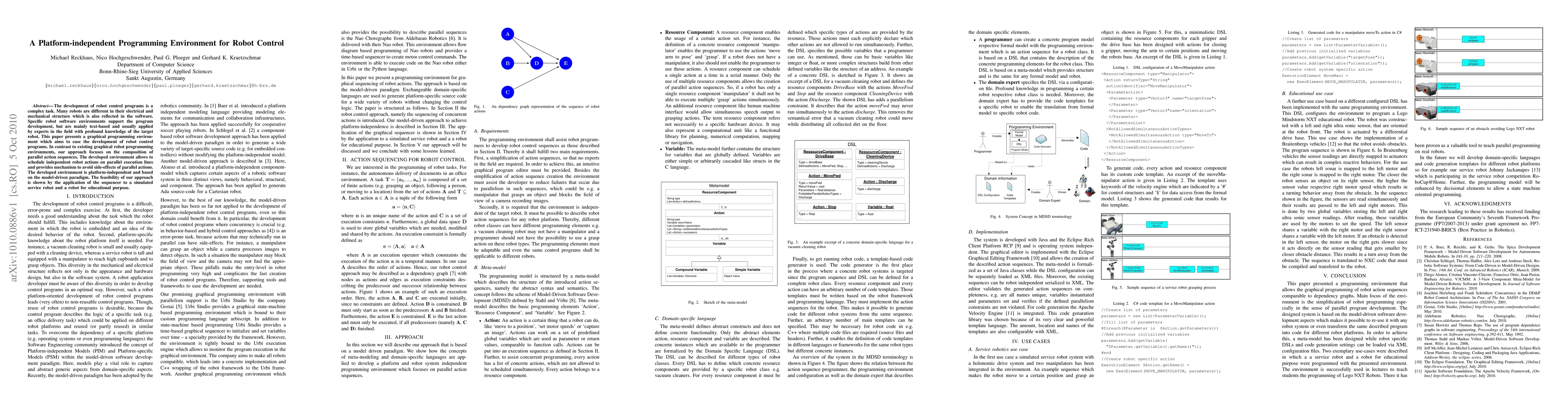 This paper introduces a graphical, platform-independent programming environment aimed at simplifying robot control program development, emphasizing parallel action sequencing to avoid side-effects and demonstrating its effectiveness on simulated robots.