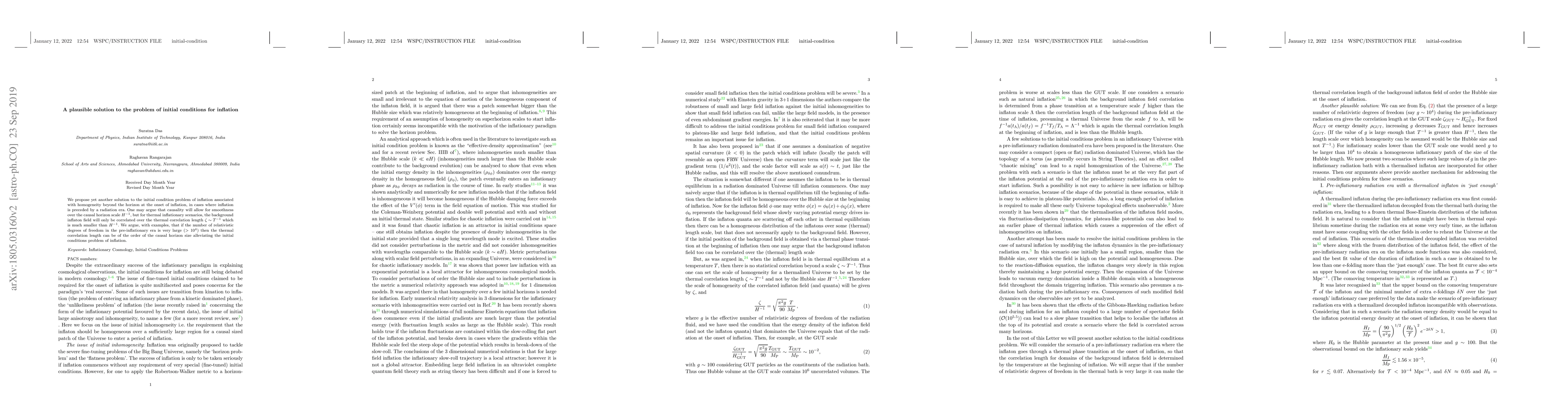 This paper proposes a solution to the initial condition problem in inflation, suggesting that a large number of relativistic degrees of freedom in the pre-inflationary era can align the thermal correlation length with the causal horizon size, thus resolving the issue of homogeneity beyond the horizon. The authors argue that this alignment can occur when the number of degrees of freedom exceeds $10^4$.