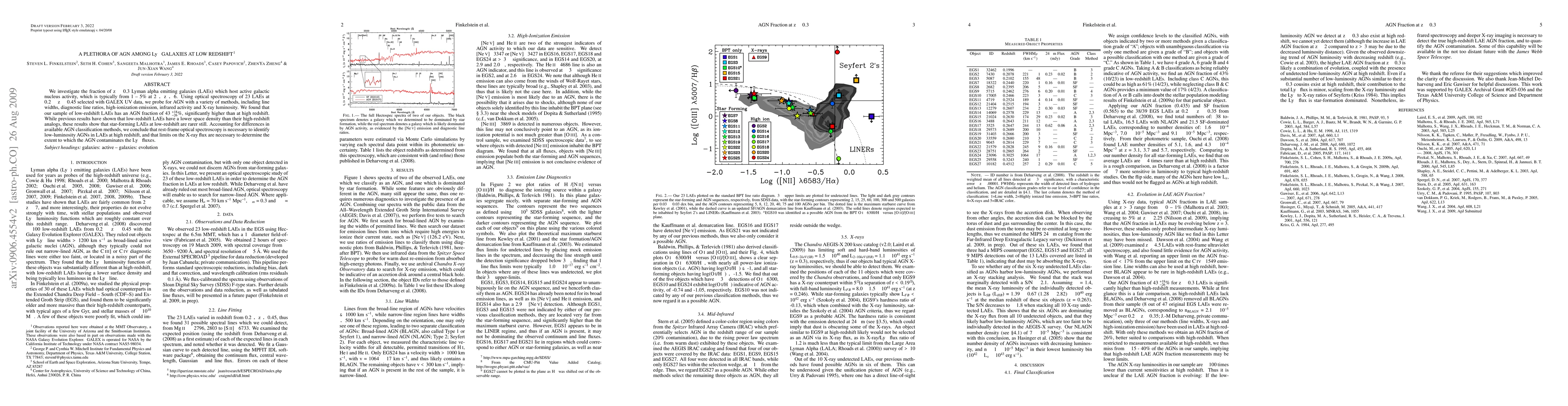The paper presents a comprehensive analysis of low-redshift LAEs using multiple AGN indicators, providing a detailed comparison with high-redshift LAEs.