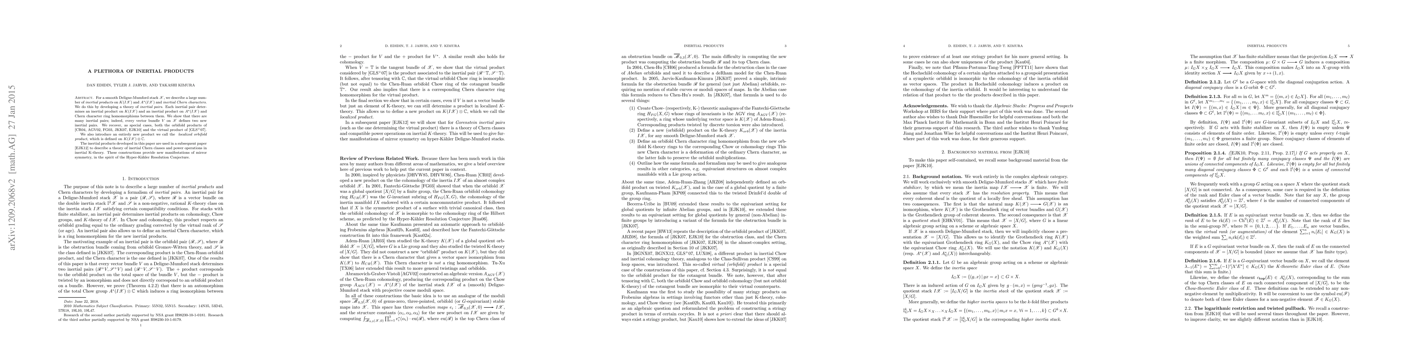 For a smooth Deligne-Mumford stack X we describe a large number of inertial products on K(IX) and A*(IX) and corresponding inertial Chern characters. We do this by developing a theory of inertial pairs. Each inertial pair determines an inertial product on K(IX) and an inertial product on A*(IX) and Chern character ring homomorphisms between them. We show that there are many inertial pairs; indeed, every vector bundle V on X defines two new inertial pairs. We recover, as special cases, the orbifold products of Chen-Run, Abramovich-Graber-Vistoli, Jarvis-Kaufmann-Kimura, and Edidin-Jarvis-Kimura and the virtual product of Gonzalez-Lupercio-Segovia-Uribe-Xicotencatl. We also introduce an entirely new product we call the localized orbifold product, which is defined on the complexification of K(IX). The inertial products developed in this paper are used in a subsequent paper to describe a theory of inertial Chern classes and power operations in inertial K-theory. These constructions provide new manifestations of mirror symmetry, in the spirit of the Hyper-Kaehler Resolution Conjecture.