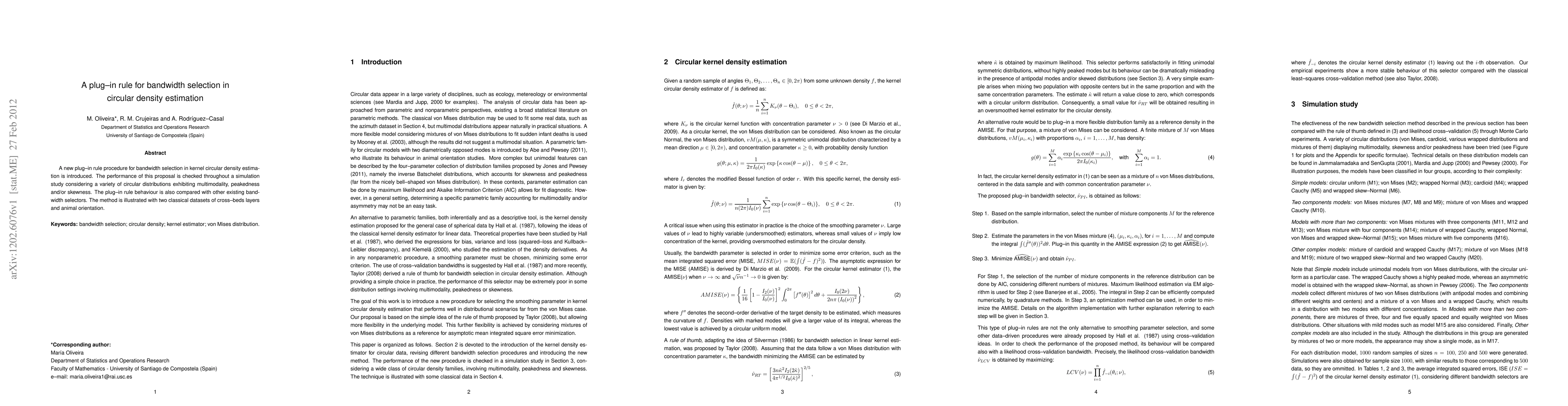 A new plug-in rule for bandwidth selection in circular density estimation is proposed and evaluated through a simulation study, comparing its performance to existing methods with various datasets.