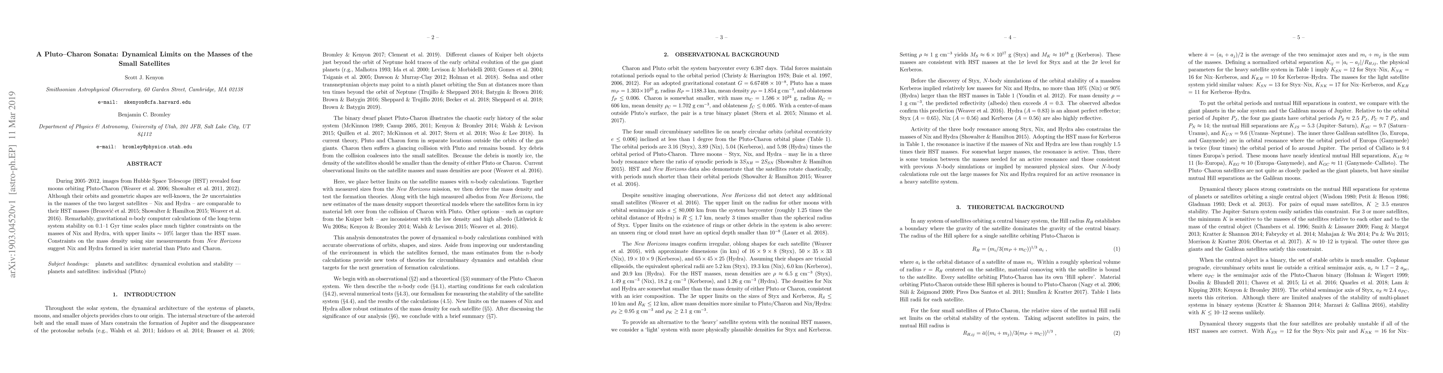 During 2005-2012, images from Hubble Space Telescope (HST) revealed four moons orbiting Pluto-Charon (Weaver et al 2006, Showalter et al 2011, 2012). Although their orbits and geometric shapes are well-known, the 2$\sigma$ uncertainties in the masses of the two largest satellites - Nix and Hydra - are comparable to their HST masses (Brozovic et al 2015, Showalter & Hamilton 2015, Weaver et al 2016). Remarkably, gravitational $n$-body computer calculations of the long-term system stability on 0.1-1 Gyr time scales place much tighter constraints on the masses of Nix and Hydra, with upper limits $\sim$ 10% larger than the HST mass. Constraints on the mass density using size measurements from New Horizons suggest Nix and Hydra formed in icier material than Pluto and Charon.