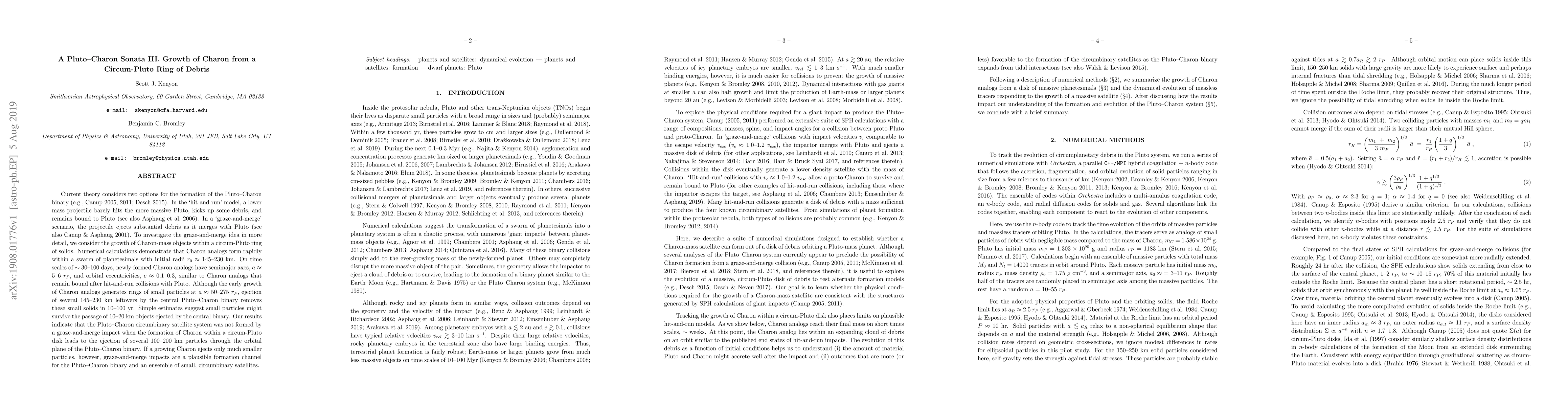 This paper explores the formation of Charon from a circum-Pluto ring of debris, finding that rapid growth of Charon analogs occurs within 30-100 days. The study concludes that while the graze-and-merge scenario is unlikely for the Pluto-Charon system due to ejection of large particles, it remains plausible if only smaller particles are ejected.