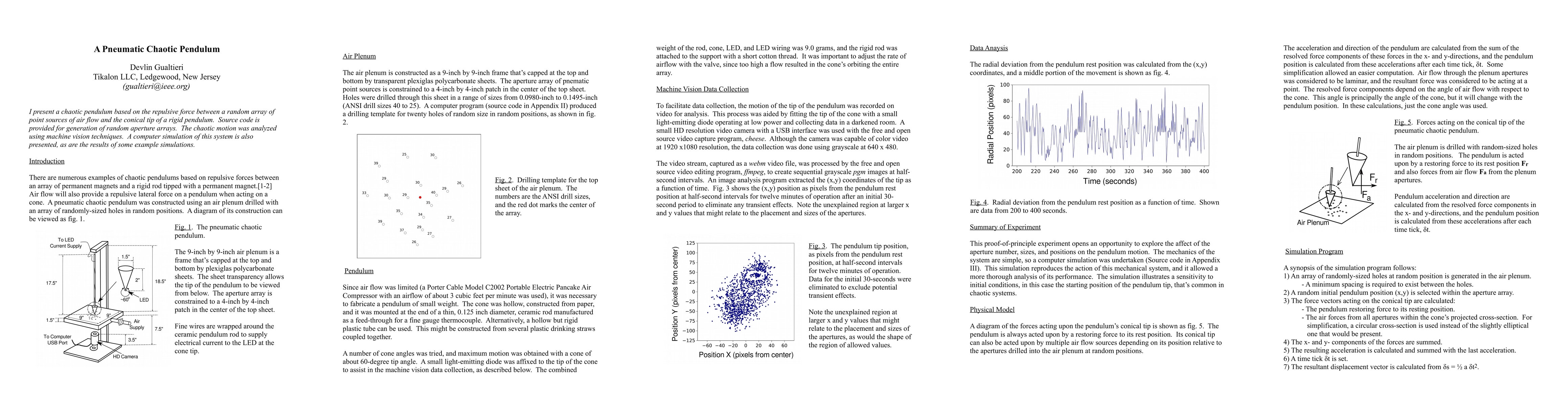 This paper introduces a chaotic pendulum driven by a random array of air flow sources, analyzed via machine vision and simulation. The study provides source code for generating these arrays and presents results from example simulations.