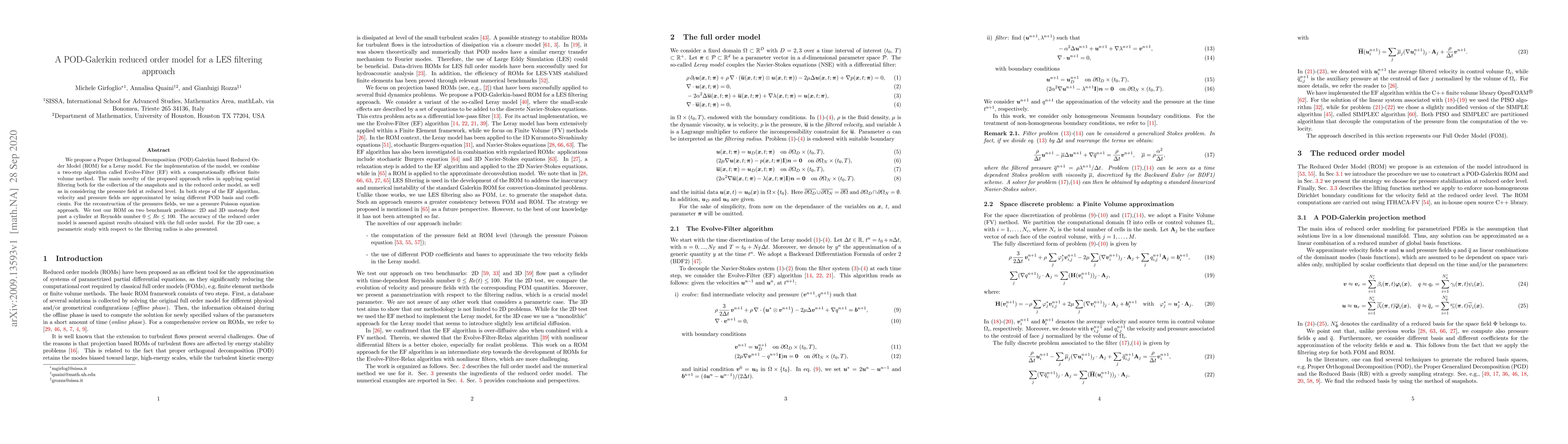 This paper introduces a POD-Galerkin Reduced Order Model (ROM) for a Leray model, combining a two-step Evolve-Filter algorithm with a finite volume method. The approach applies spatial filtering and considers the pressure field in the ROM, showing accuracy against full-order model results on 2D and 3D unsteady flow problems.