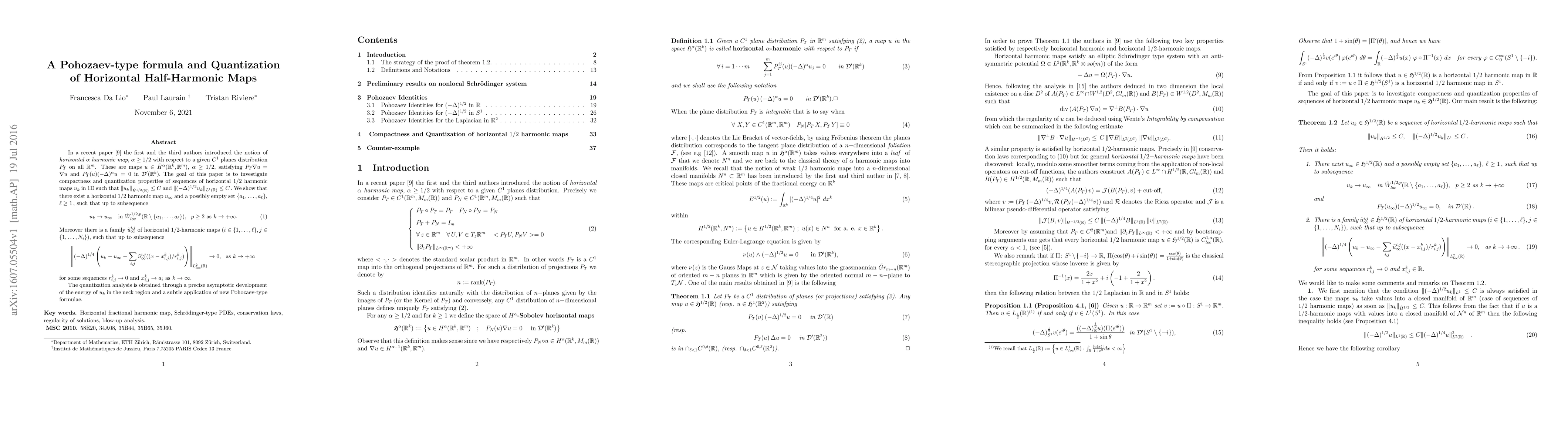 In a recent paper the first and the third authors introduced the notion of horizontal \alpha-harmonic map, with respect to a given C^1 planes distribution P_T on all R^m. The goal of this paper is to investigate compactness and quantization properties of sequences of horizontal 1/2- harmonic maps u_k in 1D. The quantization analysis is obtained through a precise asymptotic development of the energy of u_k in the neck regions and a subtle application of new Pohozaev-type formulae.