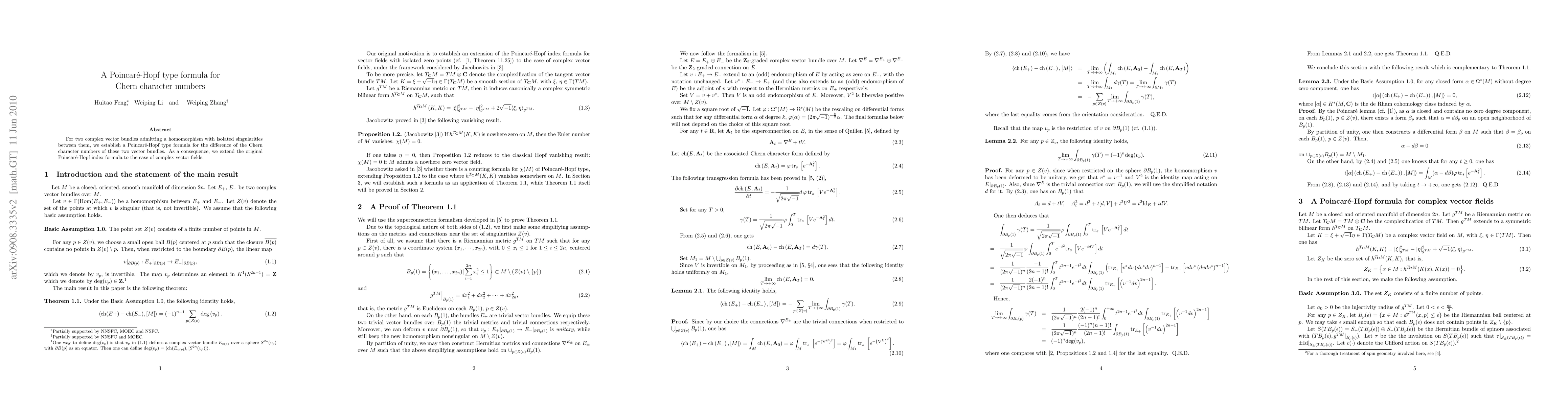 The paper establishes a Poincaré-Hopf type formula for the difference in Chern character numbers between two complex vector bundles with a homomorphism featuring isolated singularities, extending the original Poincaré-Hopf index formula to complex vector fields. The result is set to appear in Mathematische Zeitschrift.