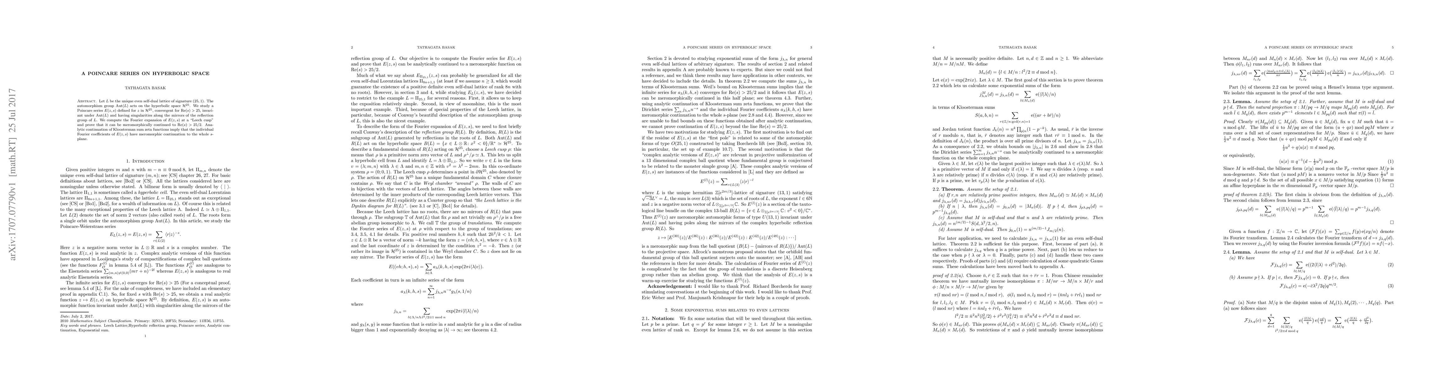 Let $L$ be the unique even self-dual lattice of signature $(25,1)$. The automorphism group $\operatorname{Aut}(L)$ acts on the hyperbolic space $\mathcal{H}^{25}$. We study a Poincar\'e series $E(z,s)$ defined for $z$ in $\mathcal{H}^{25}$, convergent for $\operatorname{Re}(s) > 25$, invariant under $\operatorname{Aut}(L)$ and having singularities along the mirrors of the reflection group of $L$. We compute the Fourier expansion of $E(z,s)$ at a "Leech cusp" and prove that it can be meromorphically continued to $\operatorname{Re}(s) > 25/2$. Analytic continuation of Kloosterman sum zeta functions imply that the individual Fourier coefficients of $E(z,s)$ have meromorphic continuation to the whole $s$-plane.