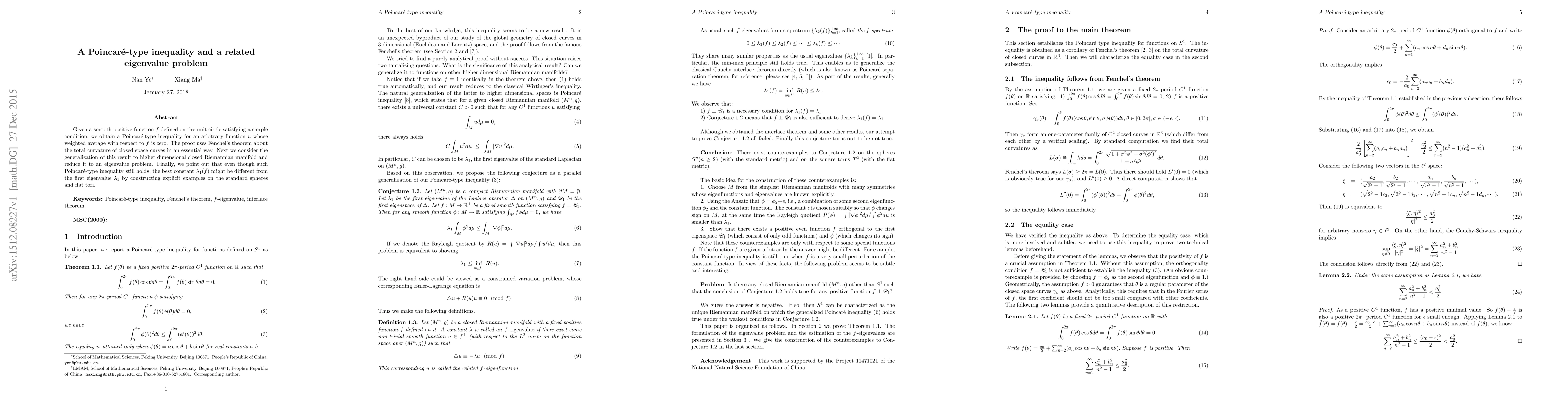 Researchers develop a Poincaré-type inequality for an arbitrary function whose weighted average is zero, utilizing Fenchel's theorem and reducing it to an eigenvalue problem in higher dimensions.