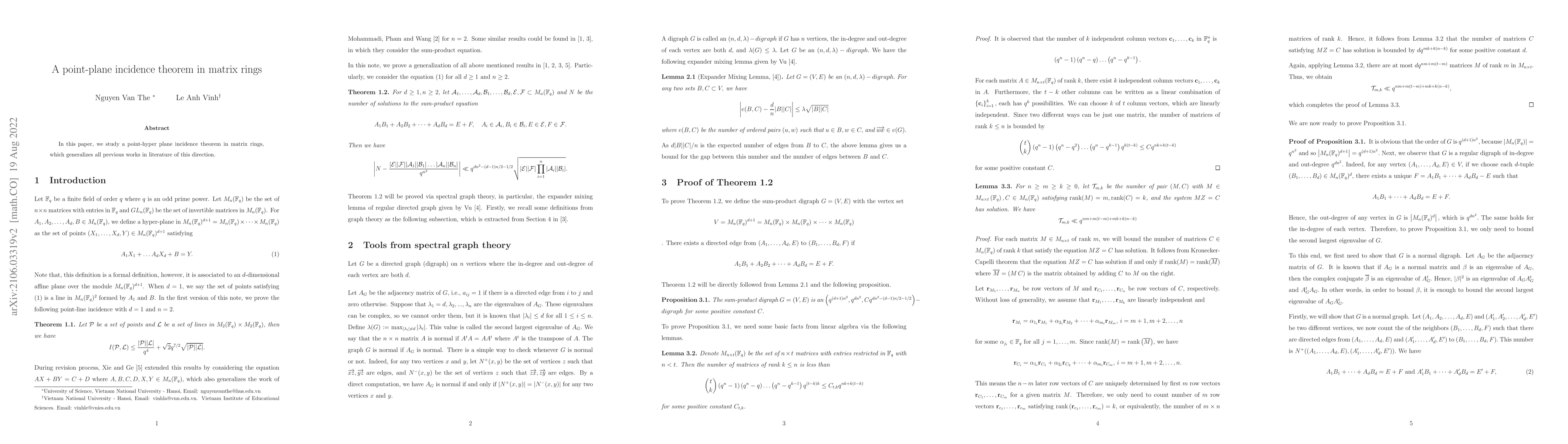 Summary: This paper explores a generalized point-hyperplane incidence theorem within matrix rings, extending existing research and providing new insights into incidence relations in this mathematical context.