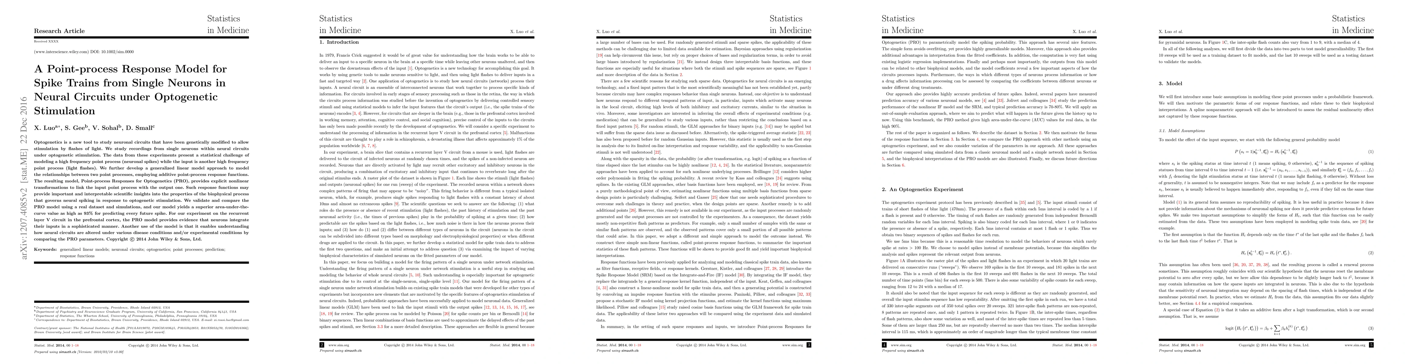 This paper develops a Point-process Response Model (PRO) to analyze spike trains from single neurons under optogenetic stimulation, providing a superior method for predicting neuronal spikes with up to 93% accuracy. The PRO model reveals sophisticated integration of inputs in neural circuits and can be used to study alterations in neural circuits under different conditions.