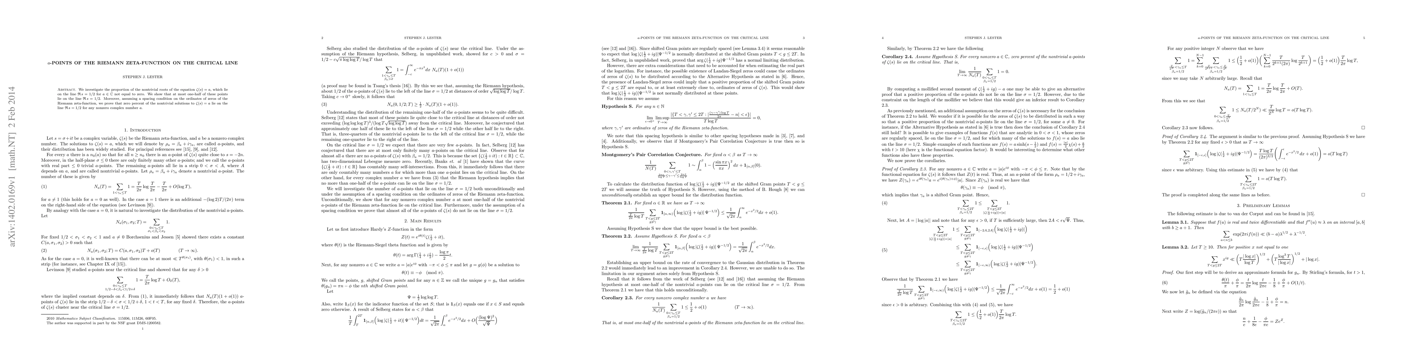 This paper explores the distribution of nontrivial roots of $\zeta(s)=a$ on the critical line $\Re s=1/2$. It concludes that at most half of these roots lie on the line, and under a spacing condition, it proves that none of the roots lie on the line for any nonzero complex $a$.