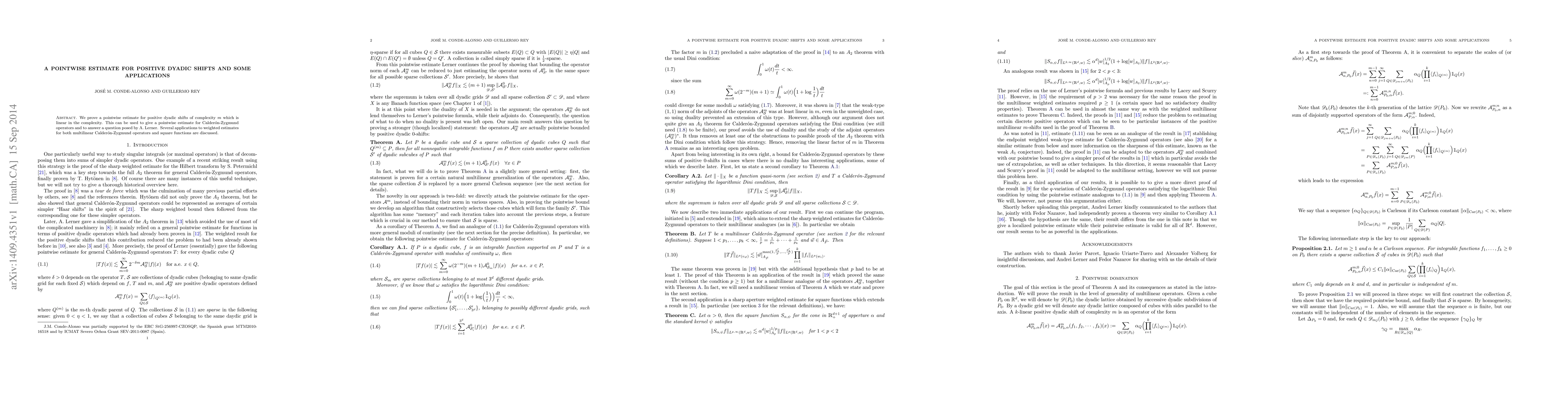 We prove a pointwise estimate for positive dyadic shifts of complexity $m$ which is linear in the complexity. This can be used to give a pointwise estimate for Calder\'on-Zygmund operators and to answer a question posed by A. Lerner. Several applications to weighted estimates for both multilinear Calder\'on-Zygmund operators and square functions are discussed.