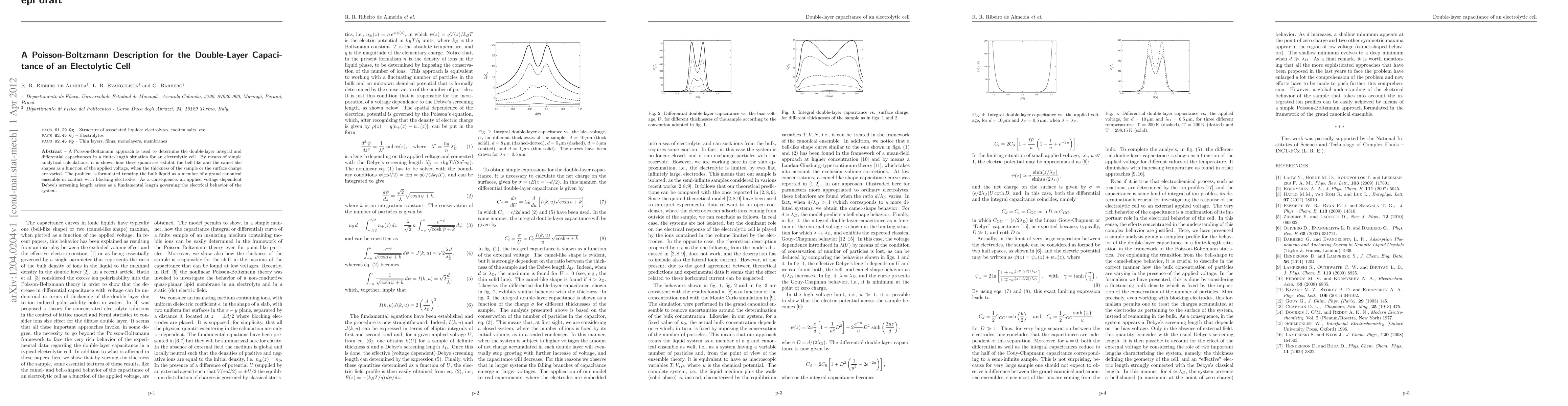 A Poisson-Boltzmann approach is used to determine the double-layer integral and differential capacitances in a finite-length situation for an electrolytic cell. By means of simple analytical calculations, it is shown how these quantities exhibit the bell-like and the camel-like shapes as a function of the applied voltage, when the thickness of the sample or the surface charge are varied. The problem is formulated treating the bulk liquid as a member of a grand canonical ensemble in contact with blocking electrodes. As a consequence, an applied voltage dependent Debye's screening length arises as a fundamental length governing the electrical behavior of the system.