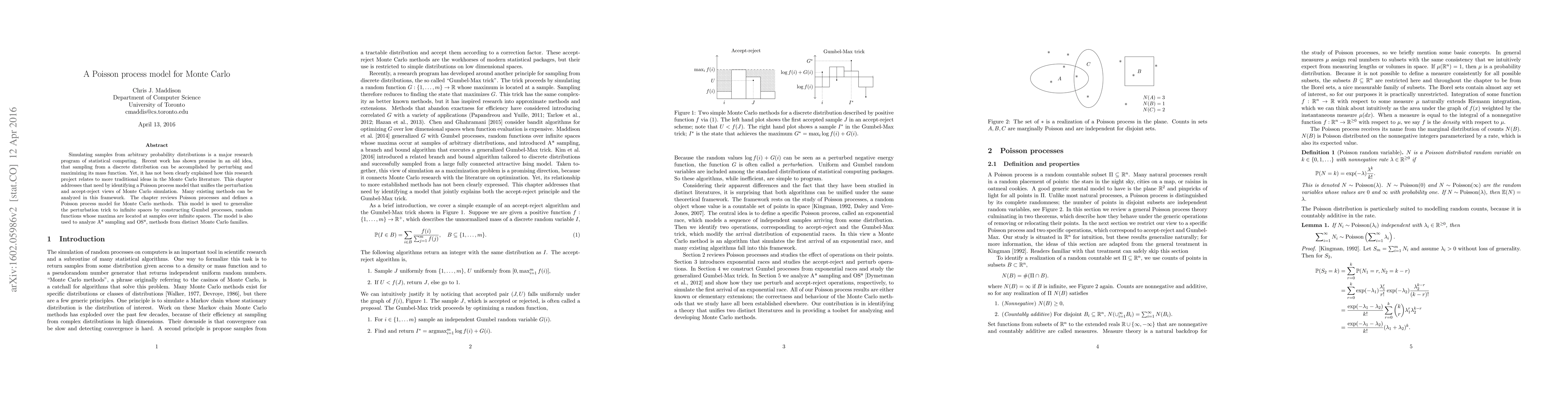 Simulating samples from arbitrary probability distributions is a major research program of statistical computing. Recent work has shown promise in an old idea, that sampling from a discrete distribution can be accomplished by perturbing and maximizing its mass function. Yet, it has not been clearly explained how this research project relates to more traditional ideas in the Monte Carlo literature. This chapter addresses that need by identifying a Poisson process model that unifies the perturbation and accept-reject views of Monte Carlo simulation. Many existing methods can be analyzed in this framework. The chapter reviews Poisson processes and defines a Poisson process model for Monte Carlo methods. This model is used to generalize the perturbation trick to infinite spaces by constructing Gumbel processes, random functions whose maxima are located at samples over infinite spaces. The model is also used to analyze A* sampling and OS*, two methods from distinct Monte Carlo families.