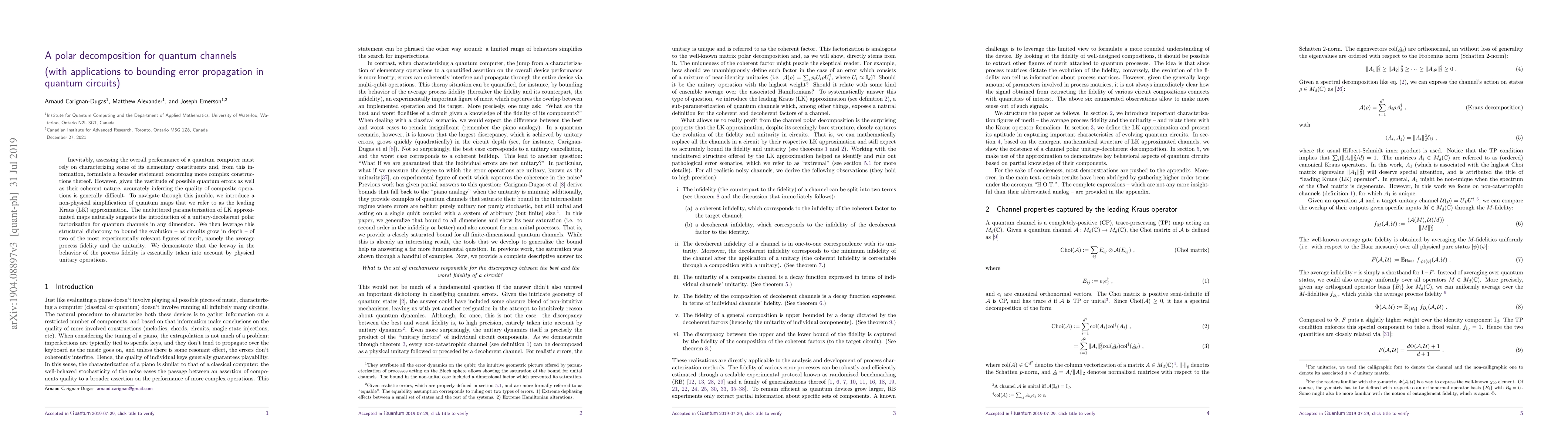 Inevitably, assessing the overall performance of a quantum computer must rely on characterizing some of its elementary constituents and, from this information, formulate a broader statement concerning more complex constructions thereof. However, given the vastitude of possible quantum errors as well as their coherent nature, accurately inferring the quality of composite operations is generally difficult. To navigate through this jumble, we introduce a non-physical simplification of quantum maps that we refer to as the leading Kraus (LK) approximation. The uncluttered parameterization of LK approximated maps naturally suggests the introduction of a unitary-decoherent polar factorization for quantum channels in any dimension. We then leverage this structural dichotomy to bound the evolution -- as circuits grow in depth -- of two of the most experimentally relevant figures of merit, namely the average process fidelity and the unitarity. We demonstrate that the leeway in the behavior of the process fidelity is essentially taken into account by physical unitary operations.