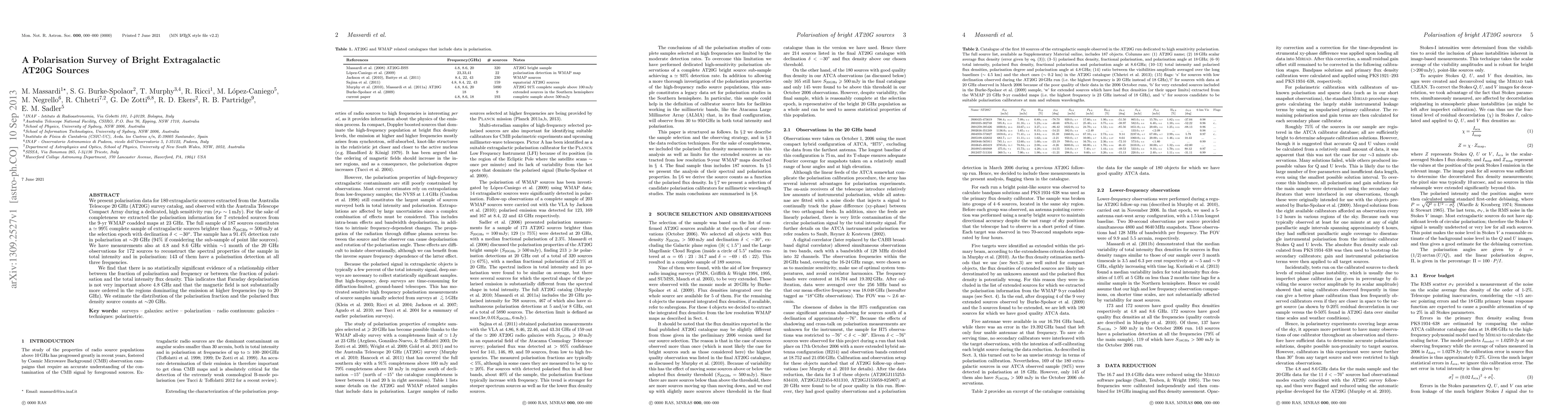 This study presents polarisation data for 187 extragalactic sources from the AT20G survey, finding a 91.4% detection rate in polarisation at 20 GHz. The research concludes that Faraday depolarisation is not significant above 4.8 GHz, suggesting the magnetic field is not more ordered at higher frequencies.