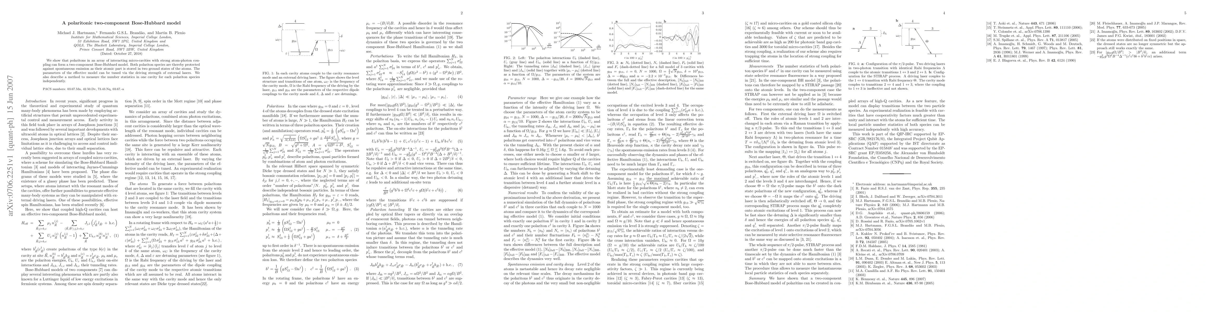We show that polaritons in an array of interacting micro-cavities with strong atom-photon coupling can form a two-component Bose-Hubbard model. Both polariton species are thereby protected against spontaneous emission as their atomic part is stored in two ground states of the atoms. The parameters of the effective model can be tuned via the driving strength of external lasers. We also describe a method to measure the number statistics in one cavity for each polariton species independently.