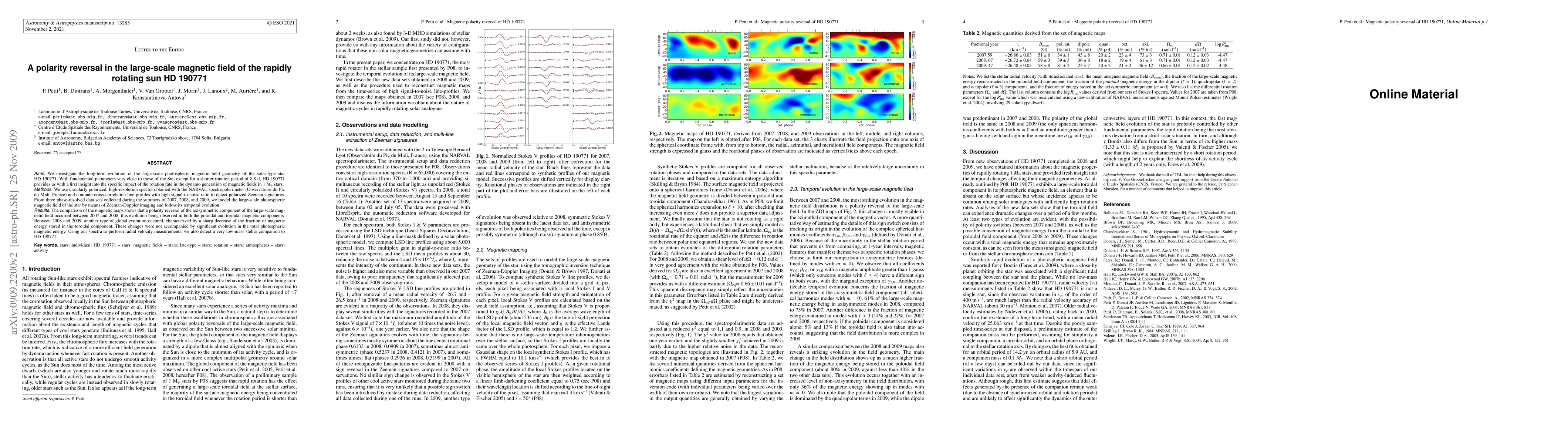 This study investigates the long-term evolution of the large-scale magnetic field of the solar-type star HD 190771, revealing a polarity reversal between 2007 and 2008, followed by a sharp decrease in the toroidal magnetic component's energy between 2008 and 2009, while maintaining constant total magnetic energy.