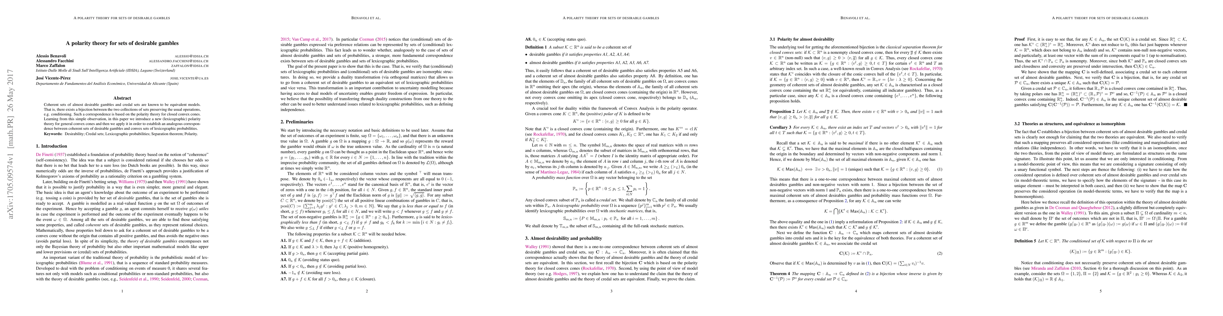 Coherent sets of almost desirable gambles and credal sets are known to be equivalent models. That is, there exists a bijection between the two collections of sets preserving the usual operations, e.g. conditioning. Such a correspondence is based on the polarity theory for closed convex cones. Learning from this simple observation, in this paper we introduce a new (lexicographic) polarity theory for general convex cones and then we apply it in order to establish an analogous correspondence between coherent sets of desirable gambles and convex sets of lexicographic probabilities.