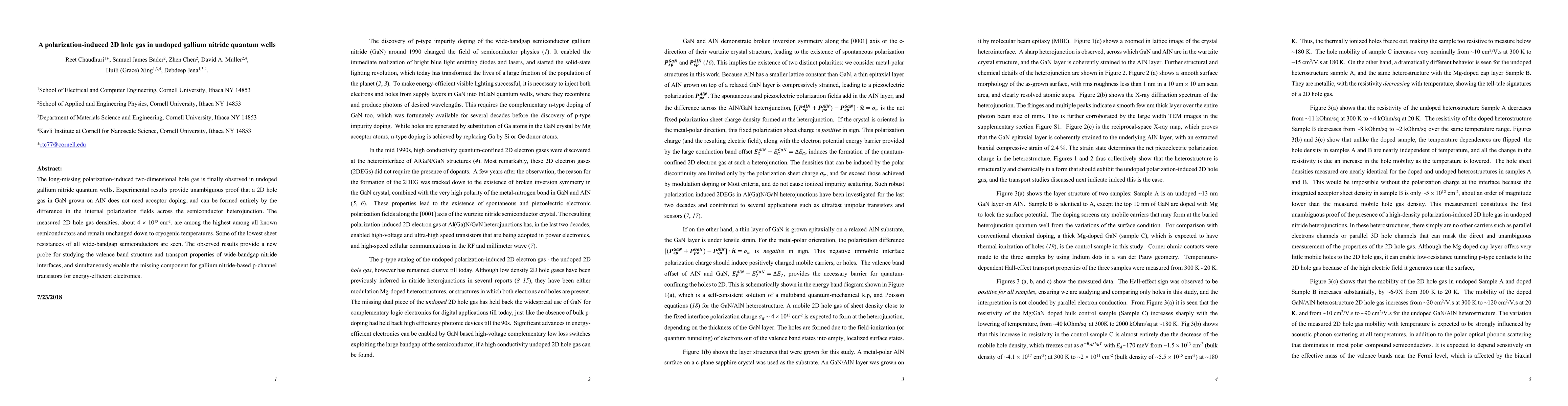 Researchers observe a 2D hole gas in undoped gallium nitride quantum wells without acceptor doping, enabling the creation of p-channel transistors for energy-efficient electronics.