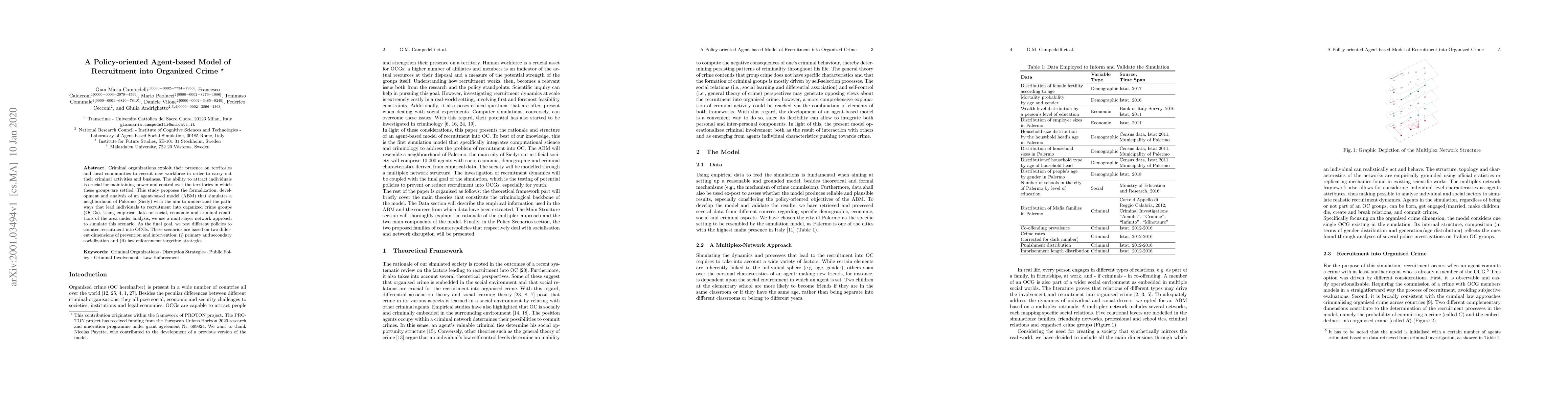 This paper develops an agent-based model to simulate recruitment into organized crime in Palermo, Sicily, using a multi-layer network approach. The study tests various policies aimed at countering recruitment, focusing on social prevention and law enforcement strategies.