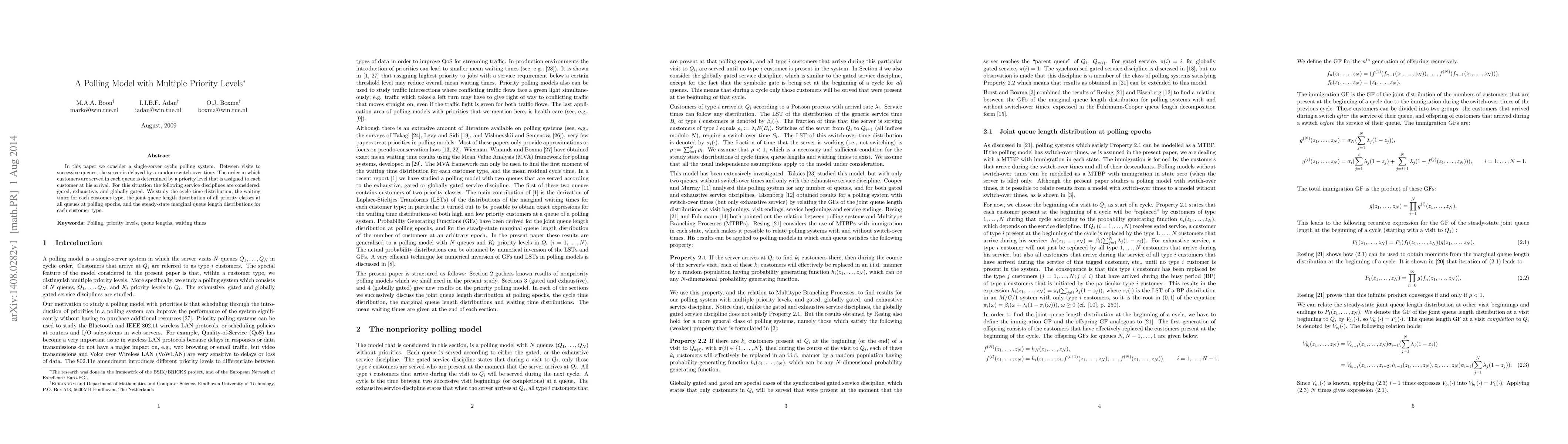 This paper examines a single-server cyclic polling system with random switch-over times and multiple priority levels for customer service. It analyzes the cycle time distribution, waiting times, queue lengths, and steady-state marginal queue length distributions under gated, exhaustive, and globally gated service disciplines.