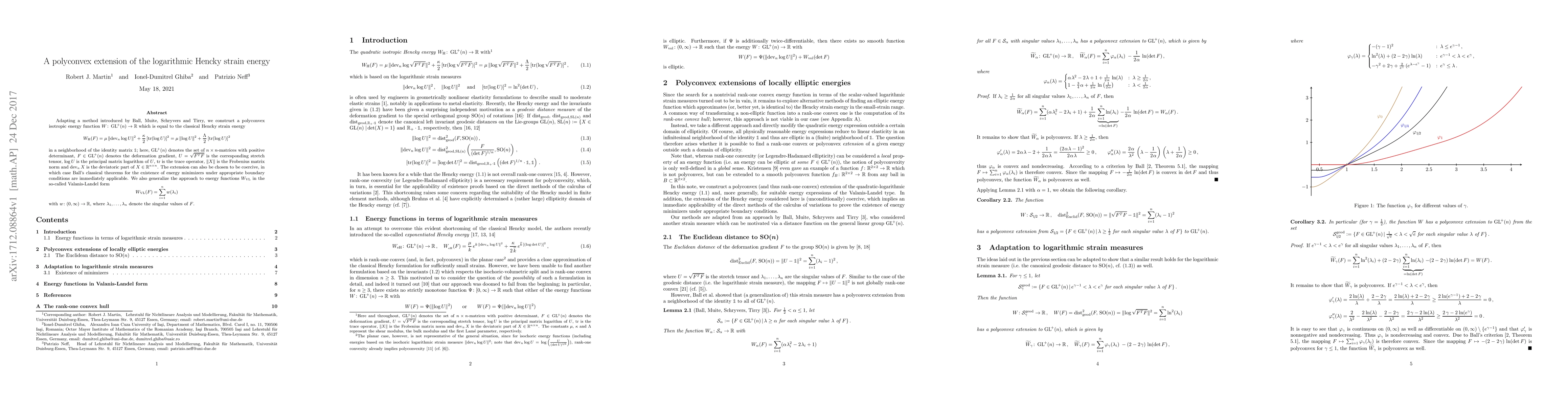 This paper constructs a polyconvex extension of the classical Hencky strain energy function, maintaining its form near the identity matrix, and generalizes it to the Valanis-Landel form. The extension is coercive, ensuring the applicability of Ball's theorems for energy minimizers.