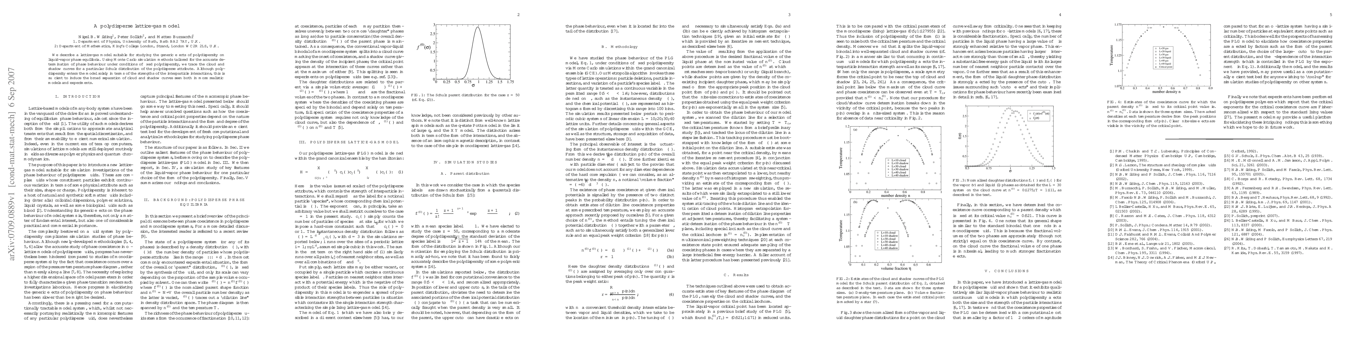 We describe a lattice-gas model suitable for studying the generic effects of polydispersity on liquid-vapor phase equilibria. Using Monte Carlo simulation methods tailored for the accurate determination of phase behaviour under conditions of fixed polydispersity, we trace the cloud and shadow curves for a particular Schulz distribution of the polydisperse attribute. Although polydispersity enters the model solely in terms of the strengths of the interparticle interactions, this is sufficient to induce the broad separation of cloud and shadow curves seen both in more realistic models and experiments.