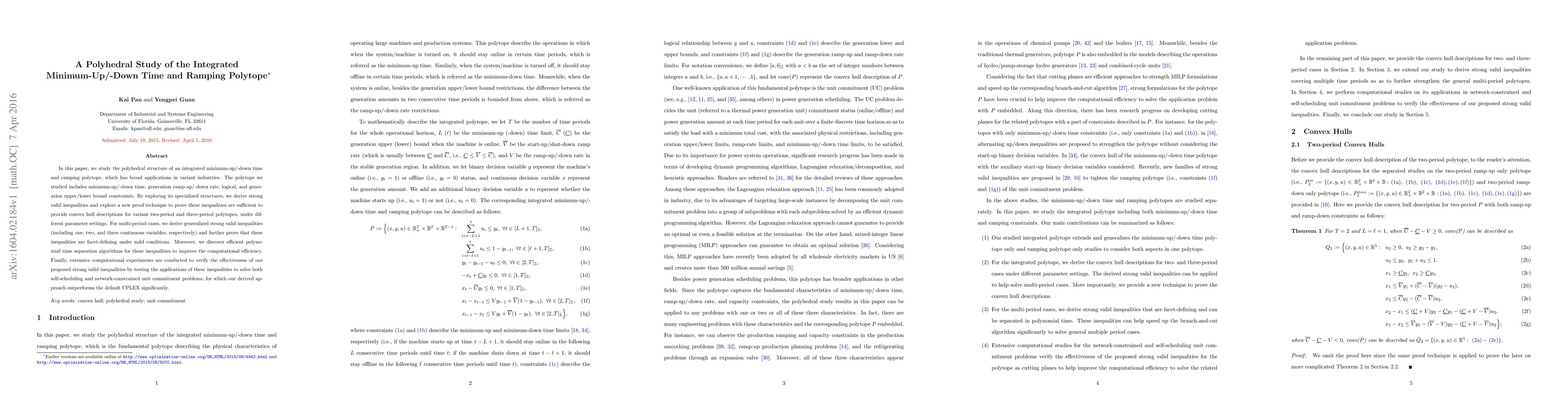 This paper investigates the polyhedral structure of an integrated minimum-up/-down time and ramping polytope, deriving strong valid inequalities and proving their sufficiency for convex hull descriptions. The study also develops efficient separation algorithms and demonstrates superior performance in solving self-scheduling and network-constrained unit commitment problems compared to CPLEX.