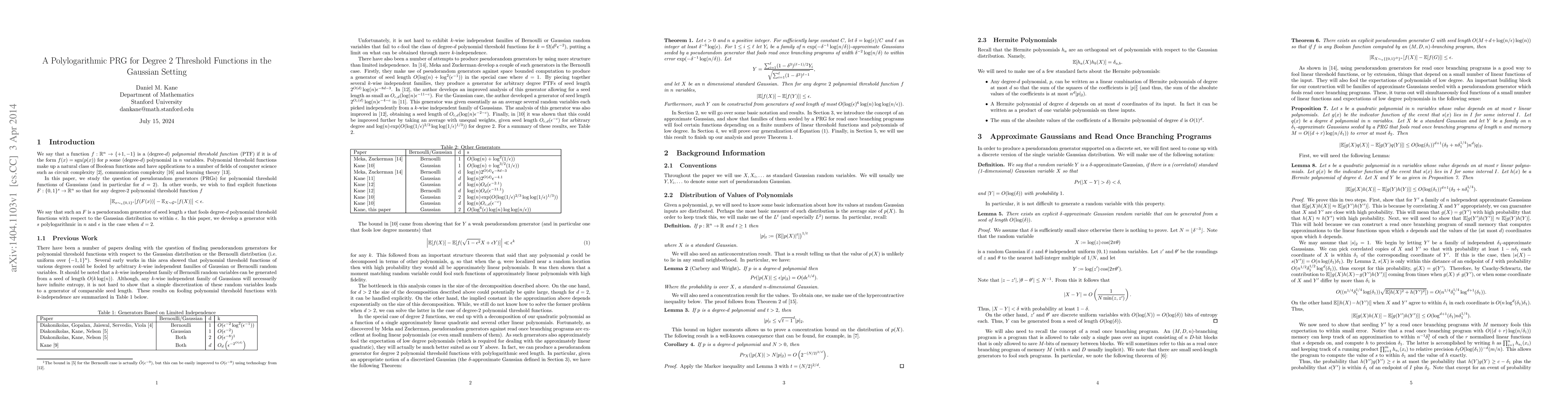 Summary: This paper introduces a novel pseudorandom generator that effectively masks degree 2 threshold functions in the Gaussian setting with an error rate of $\epsilon$, using a seed length that is polylogarithmic in $\epsilon$ and the dimension, significantly improving upon prior methods.