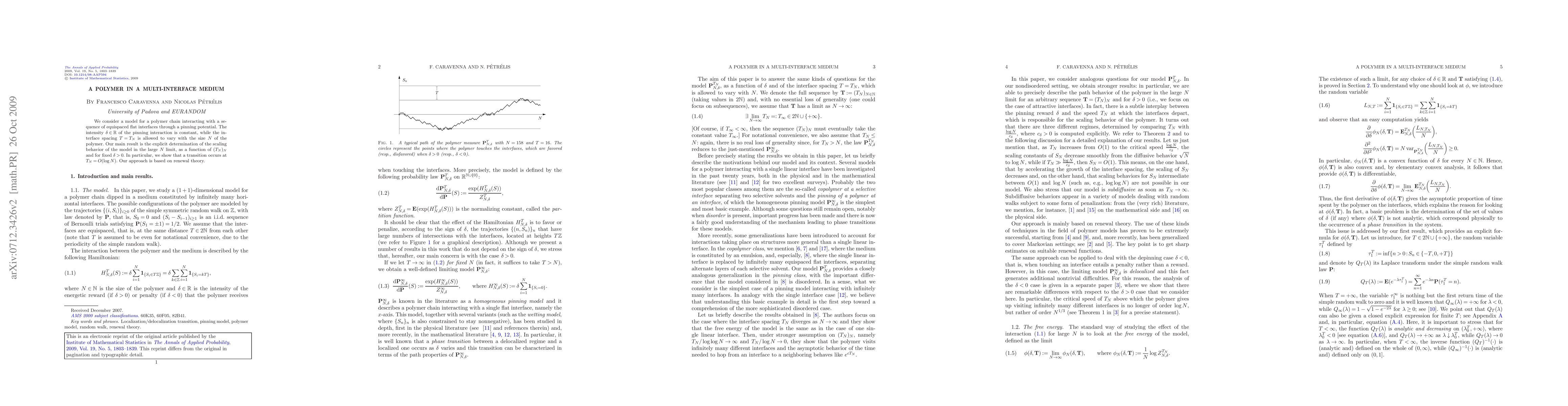 This research paper studies a polymer chain interacting with flat interfaces through a pinning potential, finding that a transition occurs at $T_N=O( ext{log N})$ in the large $N$ limit.