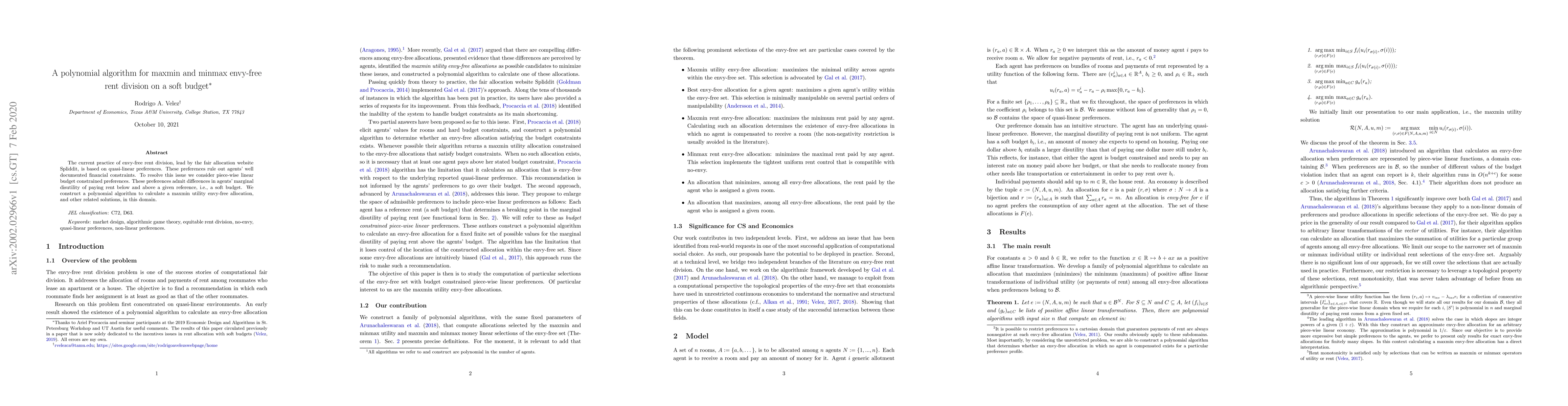 This paper proposes a polynomial algorithm to address envy-free rent division under budget constraints, moving beyond quasi-linear preferences to consider piece-wise linear preferences that reflect financial realities. It aims to achieve a maxmin utility envy-free allocation in scenarios where agents have different marginal disutility for rent payments above and below a reference point.