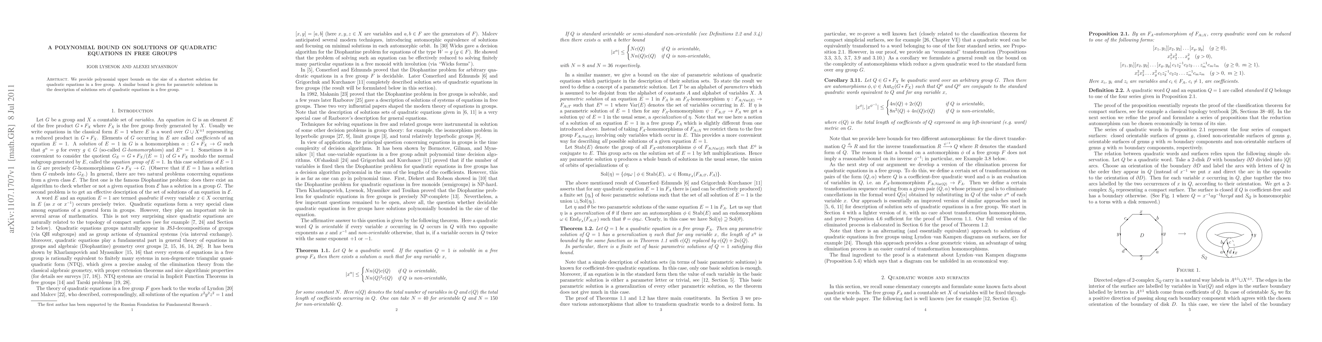 Researchers provide polynomial upper bounds on solutions of quadratic equations in free groups, improving understanding of solving complex equations in abstract algebra.