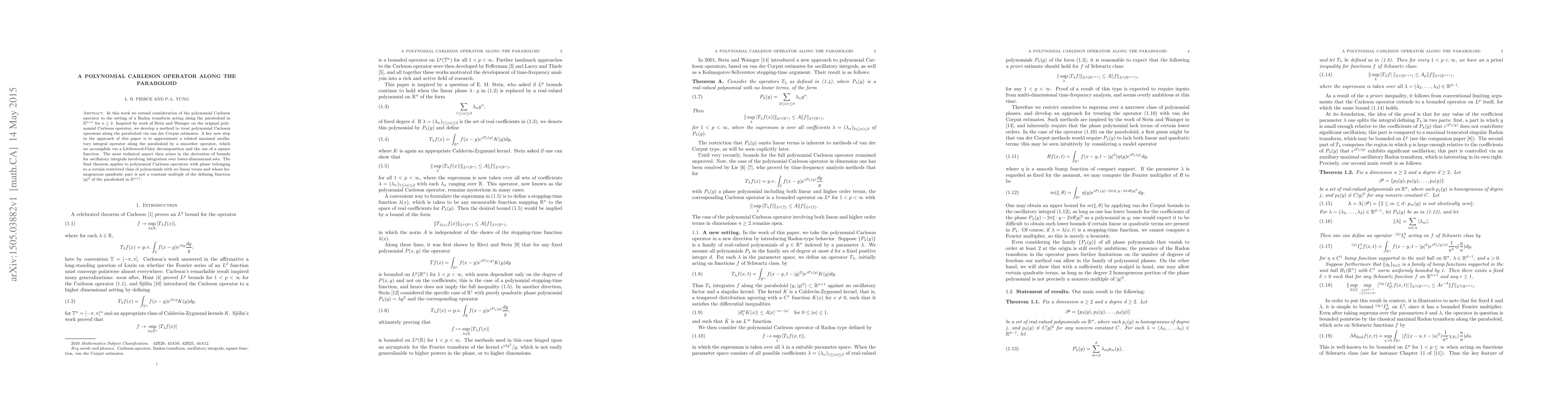 Researchers extend polynomial Carleson operators to paraboloids in n-dimensional space, developing a method using van der Corput estimates and Littlewood-Paley decomposition to treat the more complex setting.