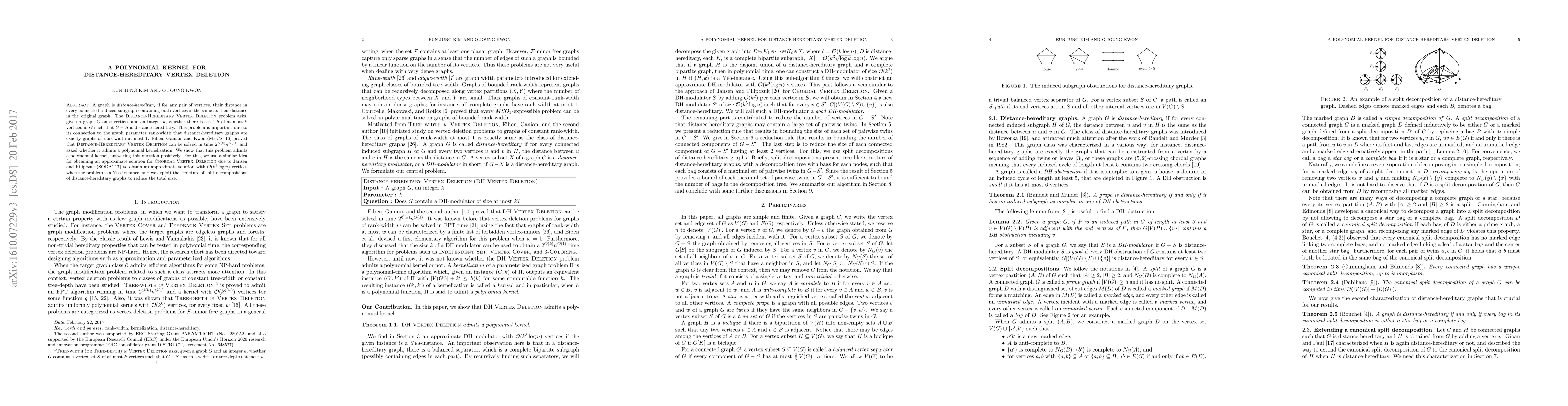 This paper demonstrates that the Distance-Hereditary Vertex Deletion problem admits a polynomial kernel, confirming the conjecture by Eiben, Ganian, and Kwon. It employs a kernelization technique inspired by approximate solutions for Chordal Vertex Deletion and leverages the structural properties of split decompositions in distance-hereditary graphs to reduce the problem size.