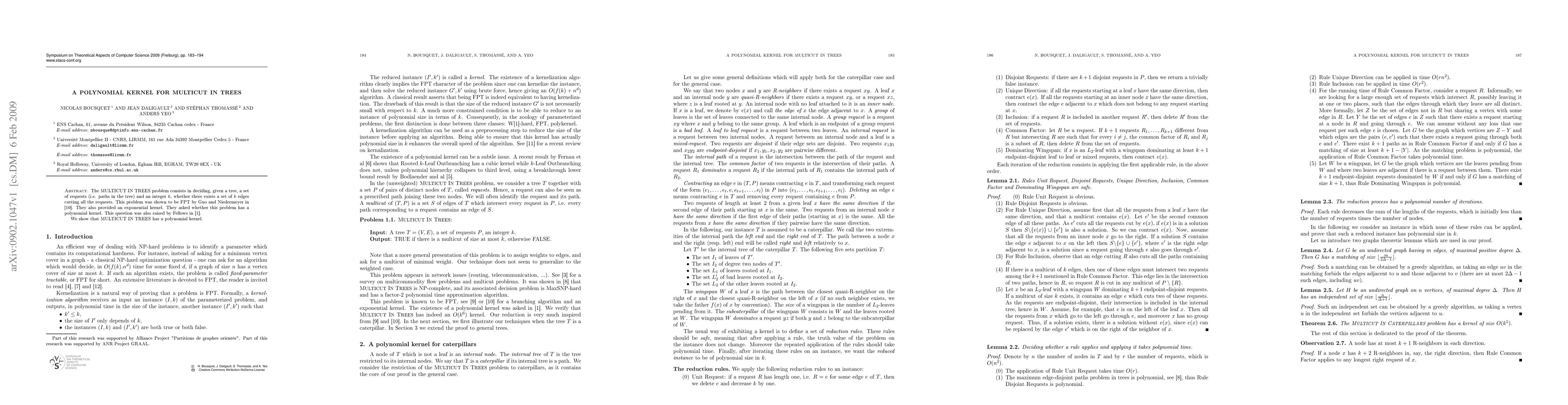 This paper demonstrates that the MULTICUT IN TREES problem, which seeks to determine if k edges can cut all specified paths in a tree, has a polynomial kernel, resolving an open question posed by Guo, Niedermeyer, and Fellows.