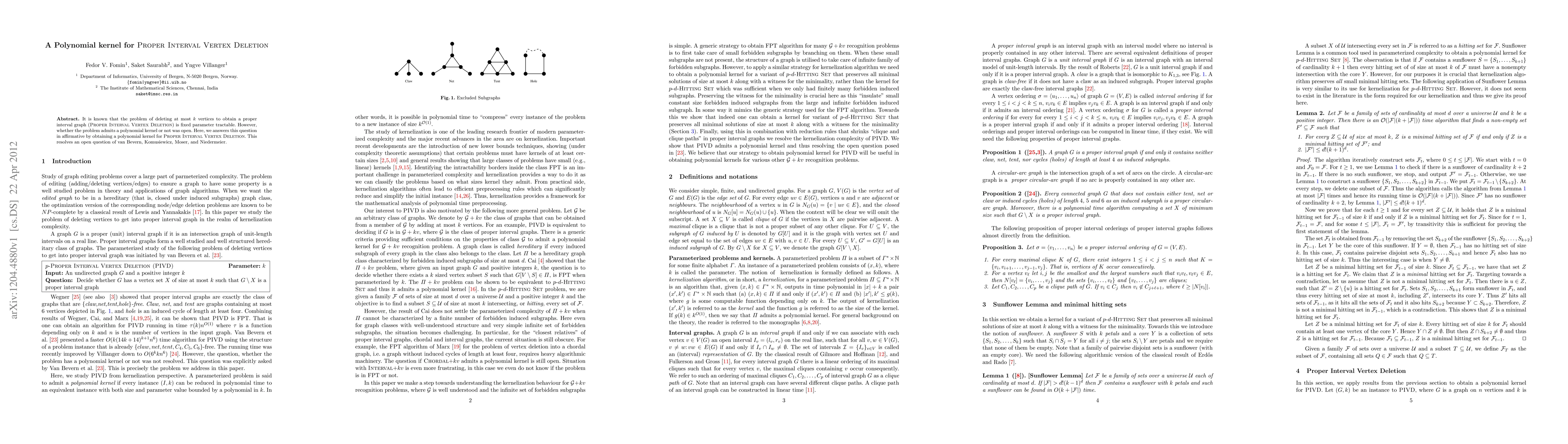 This paper demonstrates that the Proper Interval Vertex Deletion problem, which seeks to remove at most k vertices to transform a given graph into a proper interval graph, has a polynomial kernel, thereby resolving an open question raised by van Bevern et al. This result confirms the problem's fixed parameter tractability with efficient pre-processing.