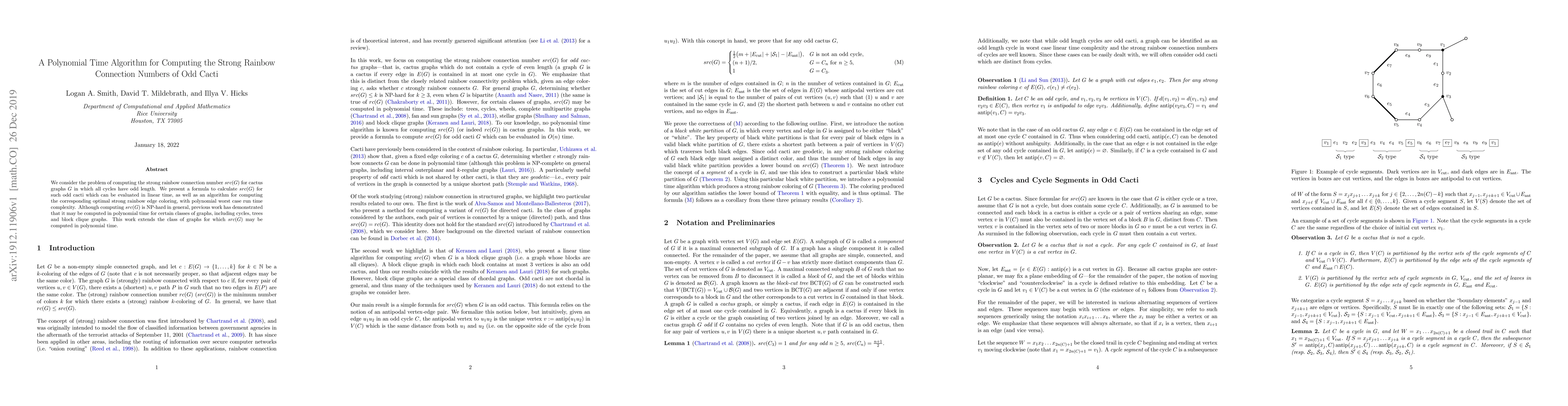 We consider the problem of computing the strong rainbow connection number $src(G)$ for cactus graphs $G$ in which all cycles have odd length. We present a formula to calculate $src(G)$ for such odd cacti which can be evaluated in linear time, as well as an algorithm for computing the corresponding optimal strong rainbow edge coloring, with polynomial worst case run time complexity. Although computing $src(G)$ is NP-hard in general, previous work has demonstrated that it may be computed in polynomial time for certain classes of graphs, including cycles, trees and block clique graphs. This work extends the class of graphs for which $src(G)$ may be computed in polynomial time.