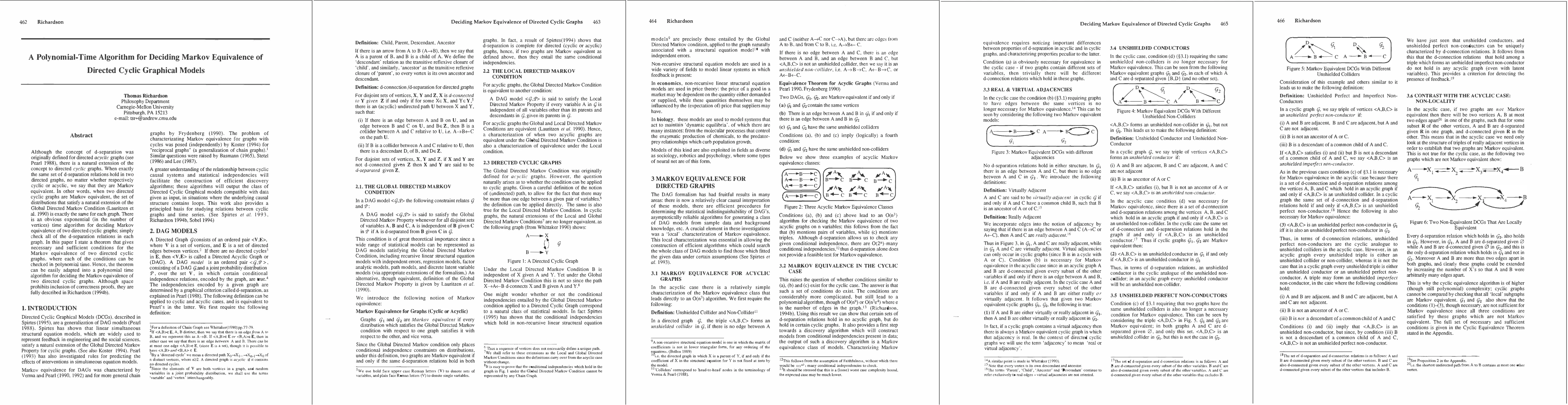 Although the concept of d-separation was originally defined for directed acyclic graphs (see Pearl 1988), there is a natural extension of he concept to directed cyclic graphs. When exactly the same set of d-separation relations hold in two directed graphs, no matter whether respectively cyclic or acyclic, we say that they are Markov equivalent. In other words, when two directed cyclic graphs are Markov equivalent, the set of distributions that satisfy a natural extension of the Global Directed Markov condition (Lauritzen et al. 1990) is exactly the same for each graph. There is an obvious exponential (in the number of vertices) time algorithm for deciding Markov equivalence of two directed cyclic graphs; simply chech all of the d-separation relations in each graph. In this paper I state a theorem that gives necessary and sufficient conditions for the Markov equivalence of two directed cyclic graphs, where each of the conditions can be checked in polynomial time. Hence, the theorem can be easily adapted into a polynomial time algorithm for deciding the Markov equivalence of two directed cyclic graphs. Although space prohibits inclusion of correctness proofs, they are fully described in Richardson (1994b).