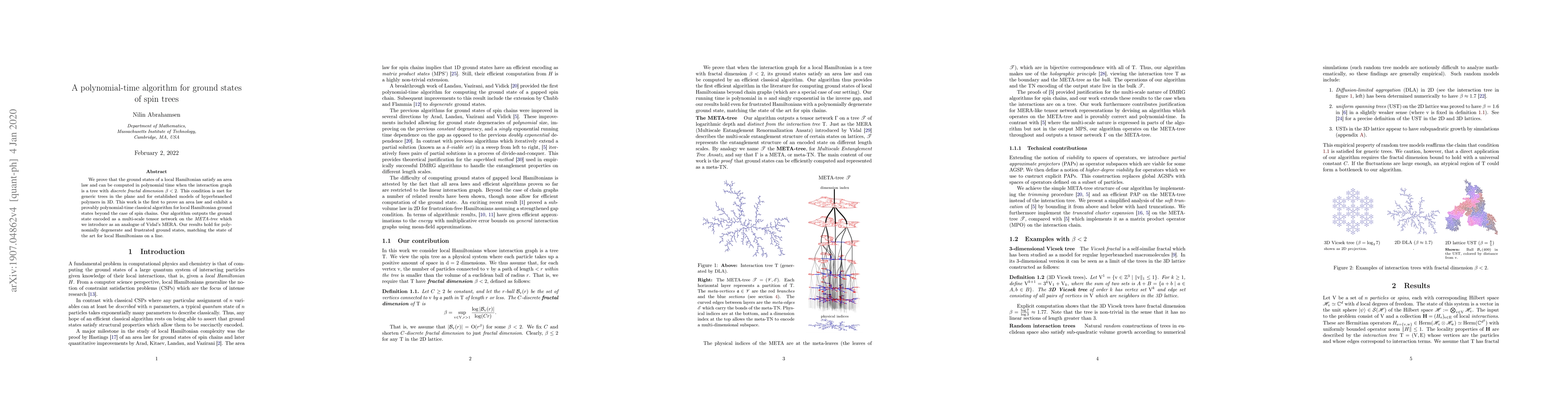This paper proves that ground states of local Hamiltonian systems on tree-shaped graphs can be computed in polynomial time, breaking a long-standing barrier for solving complex quantum systems.