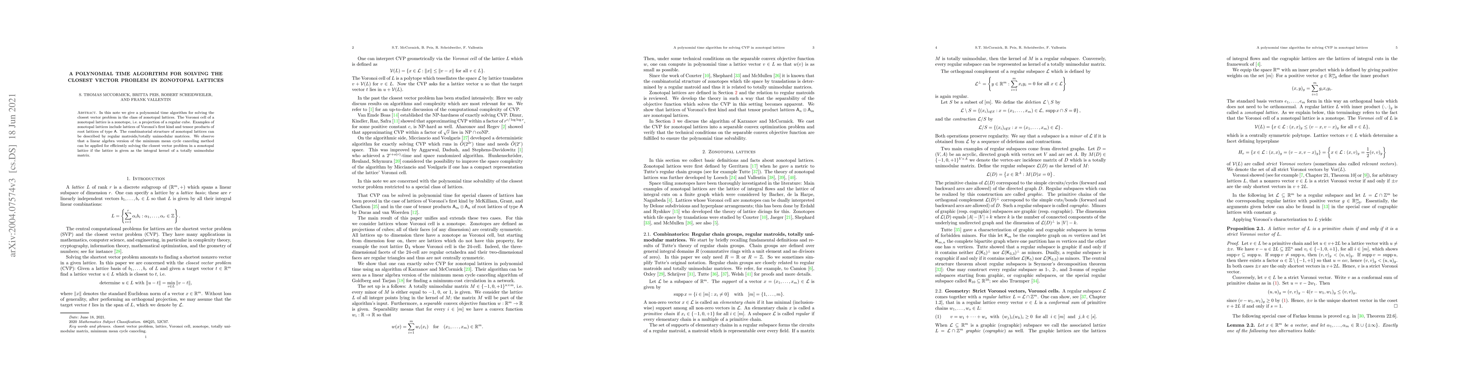 This paper presents a polynomial time algorithm for solving the closest vector problem in zonotopal lattices, leveraging the combinatorial structure of these lattices and applying a linear algebra method based on minimum mean cycle canceling. The approach is effective when the lattice is represented by the integral kernel of a totally unimodular matrix.