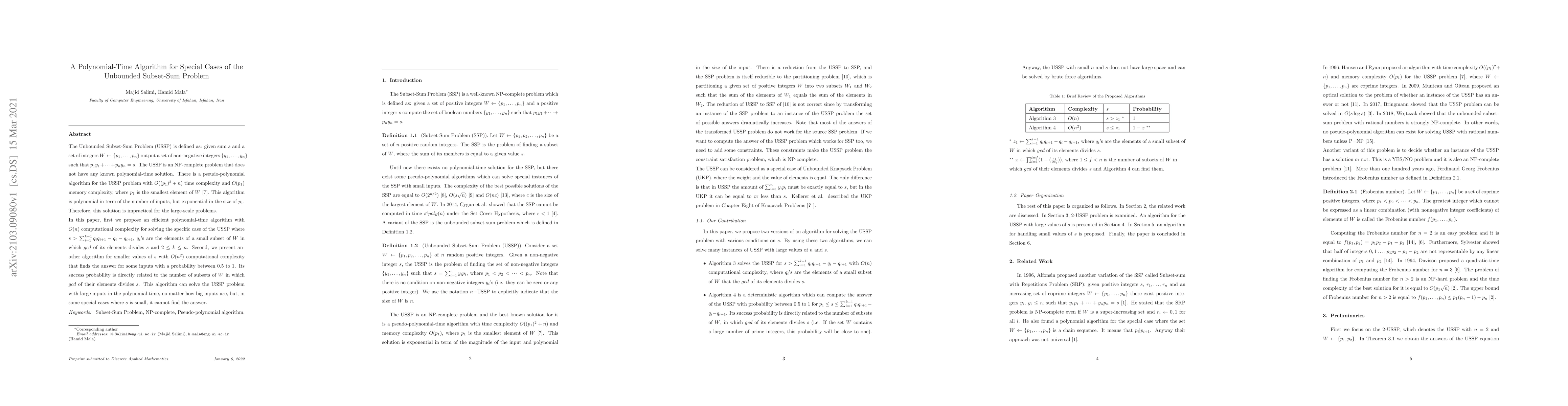 Researchers have developed two polynomial-time algorithms for solving a special case of the Unbounded Subset-Sum Problem, which is NP-complete, with improved efficiency and scalability for large inputs.