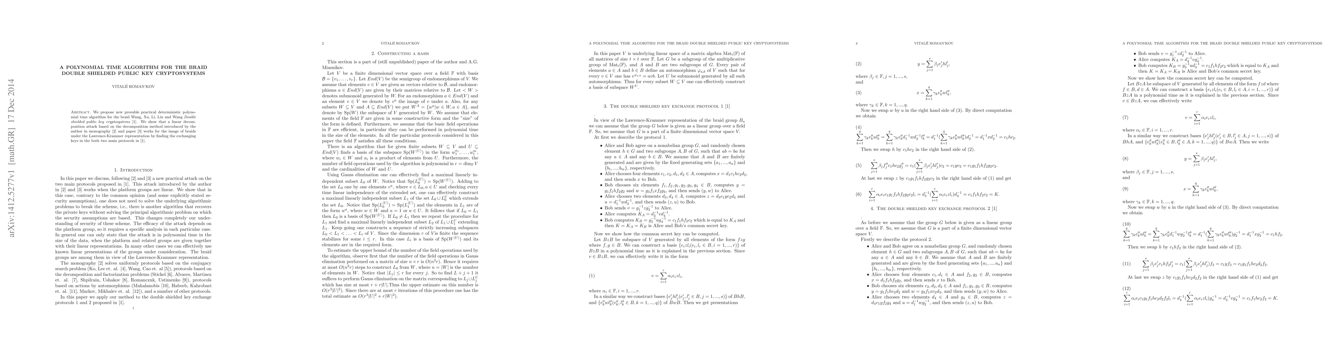 We propose new provable practical deterministic polynomial time algorithm for the braid Wang, Xu, Li, Lin and Wang Double shielded public key cryptosystems. We show that a linear decomposition attack based on the decomposition method introduced by the author in monography "Algebraic Cryptography" (2013) and some papers works for the image of braids under the Lawrence-Krammer representation by finding the exchanging keys in both two main protocols by the authors listed above.