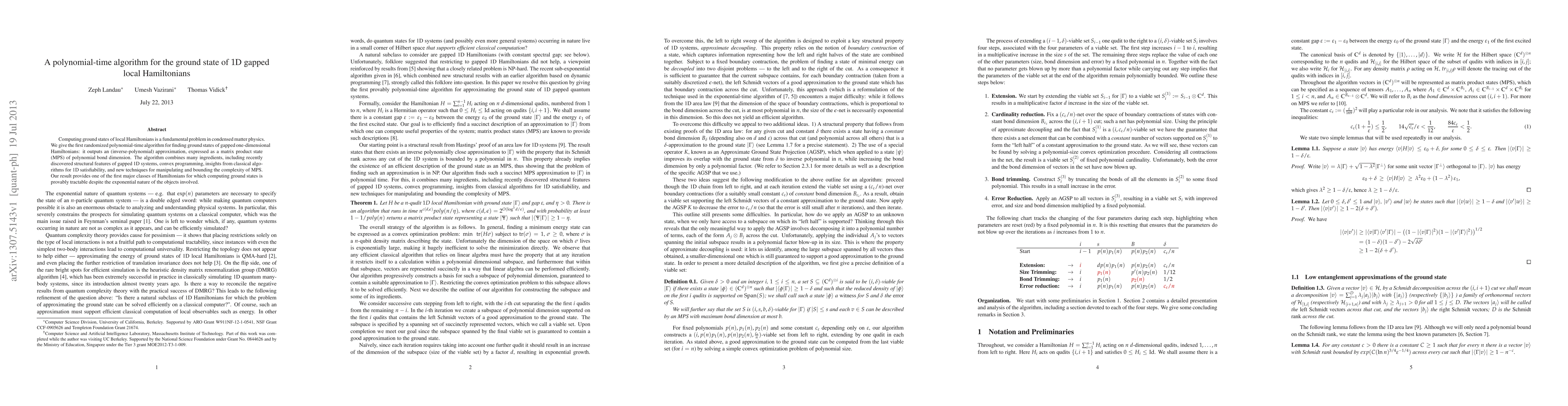 This paper presents a randomized polynomial-time algorithm for finding approximate ground states of gapped one-dimensional local Hamiltonians using matrix product states. The algorithm leverages structural features of gapped 1D systems, convex programming, and classical algorithm insights, marking a significant step towards tractable computation for such problems.