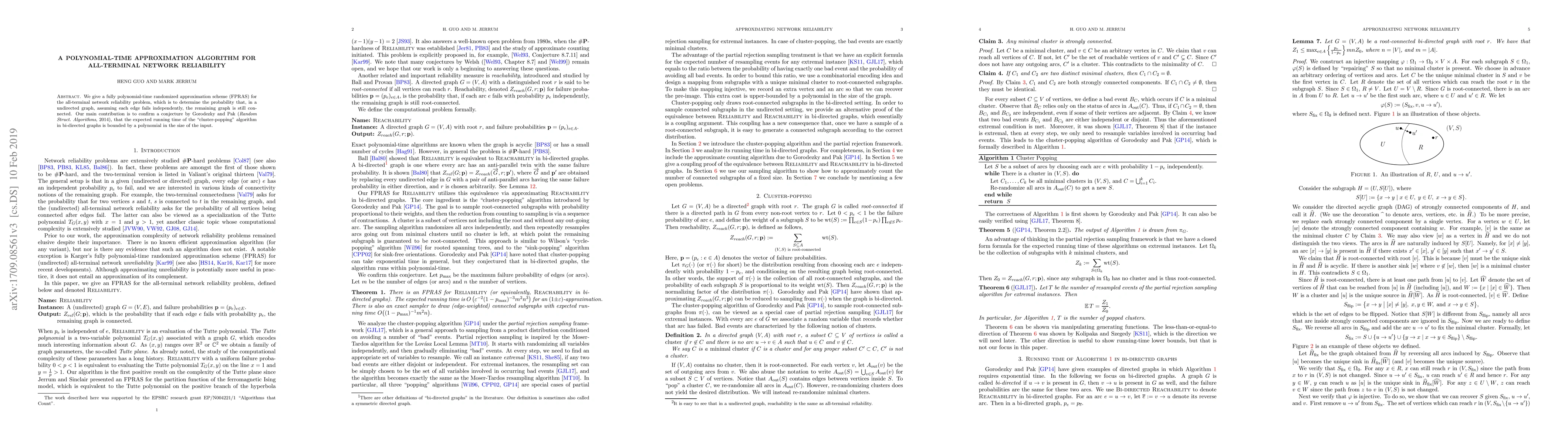 This paper presents a fully polynomial-time randomized approximation scheme (FPRAS) for the all-terminal network reliability problem, confirming a conjecture that the "cluster-popping" algorithm runs in polynomial time for bi-directed graphs. The main contribution is the confirmation of the polynomial-time bound for this algorithm.